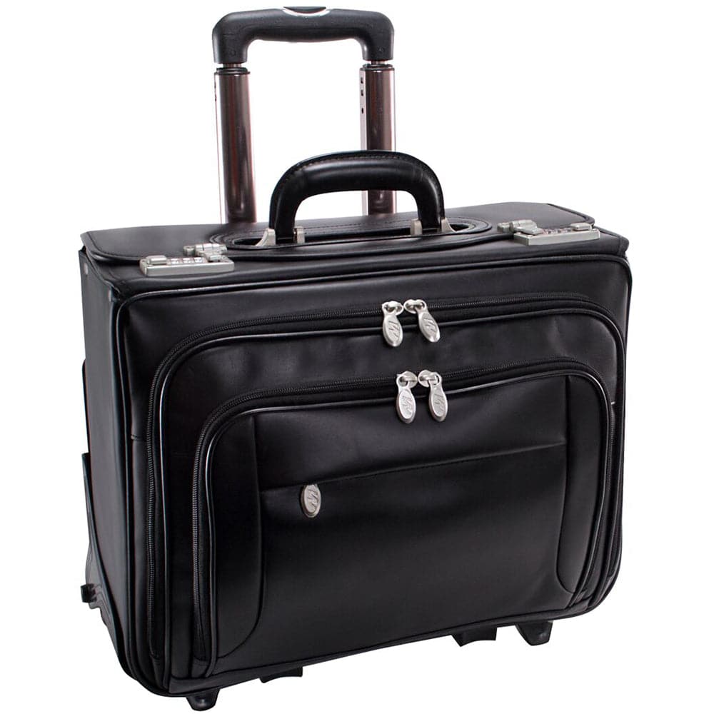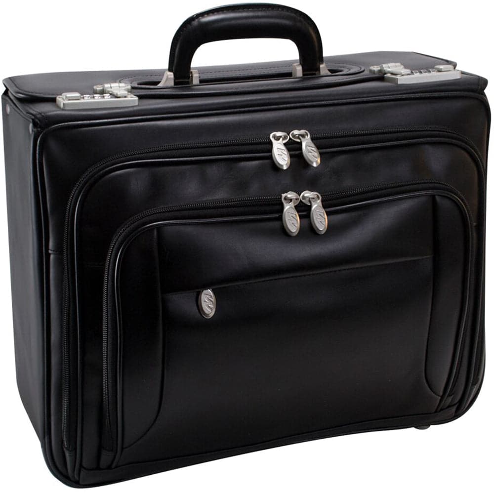 Patented Detachable Wheel and Handle SystemFeatures dual three-digit secured combination locks. Spacious main compartment includes a built in 17" laptop sleeve, and a file divider. Front zipper pocket for small miscellaneous items. 1st front organizer pocket for media devices, cell phone, business cards and pens. 2nd front organizer pocket opens for easy access to file divider for your documents.