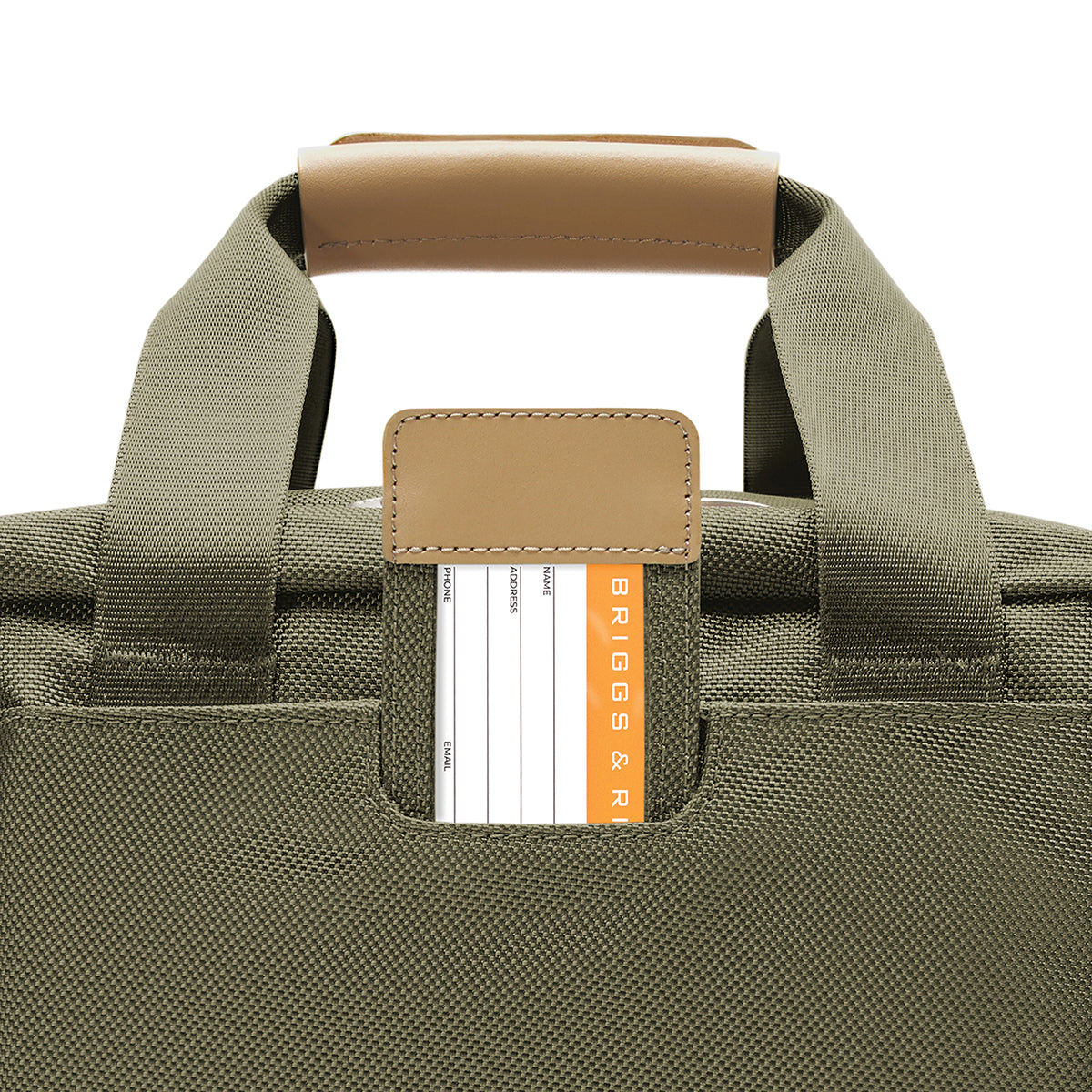 - Slide bag over the outsider handle of a Briggs & Riley rolling bag