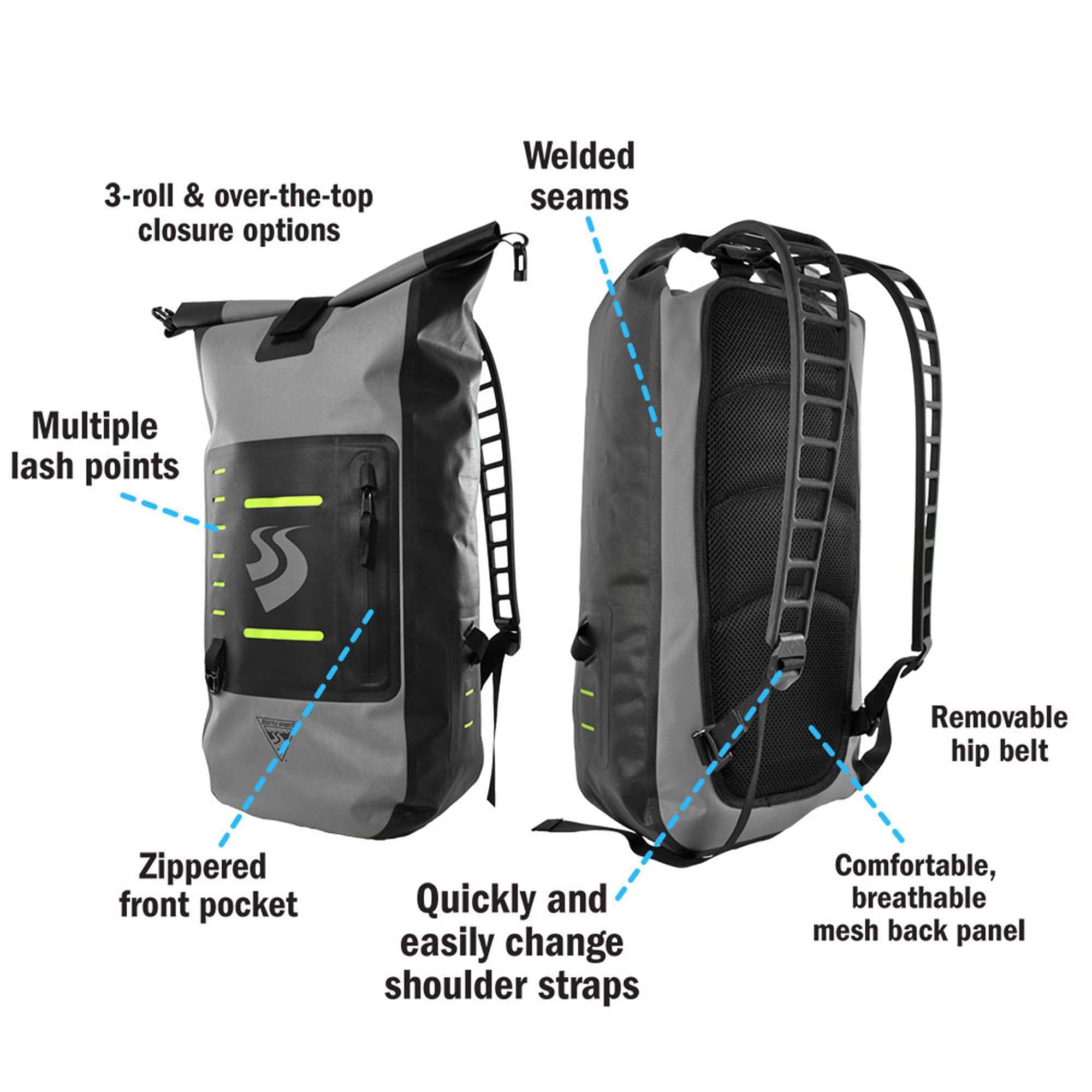 - 2 closure options: 3-roll waterproof closure or quick access over-the-top closure