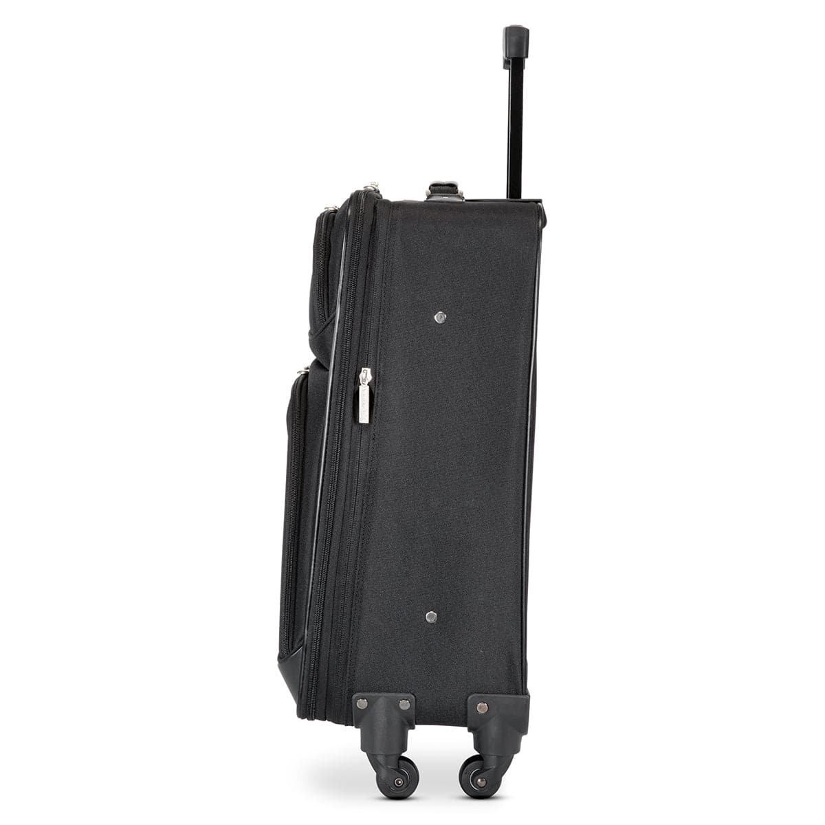 - Telescoping handle with comfortable grip and zip-close cover