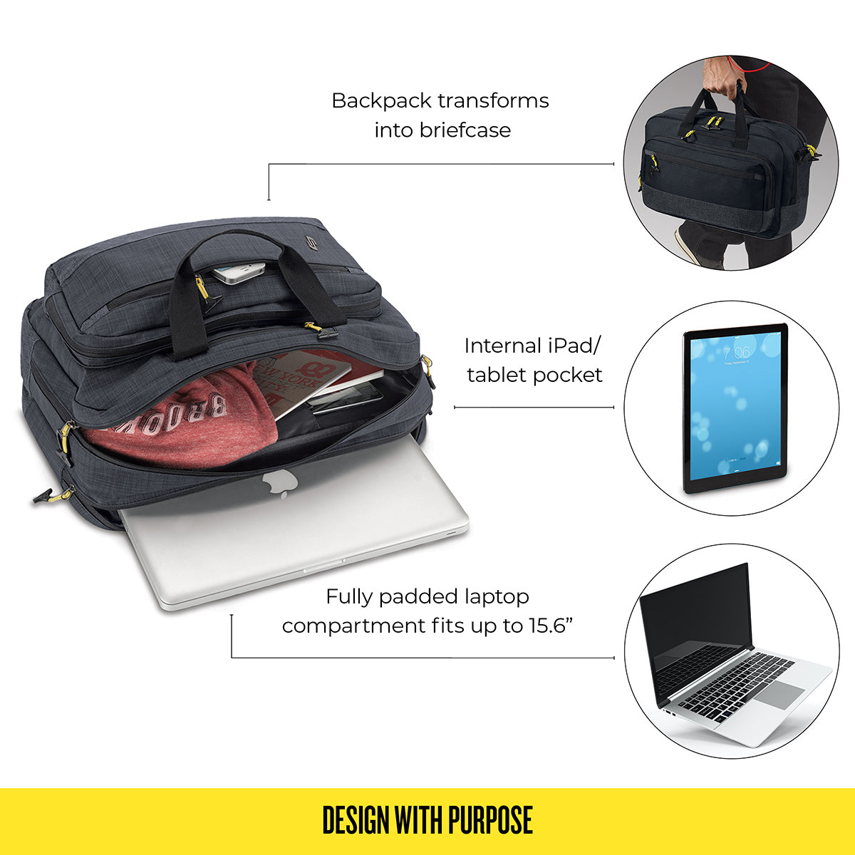 - Backpack transforms into briefcase
