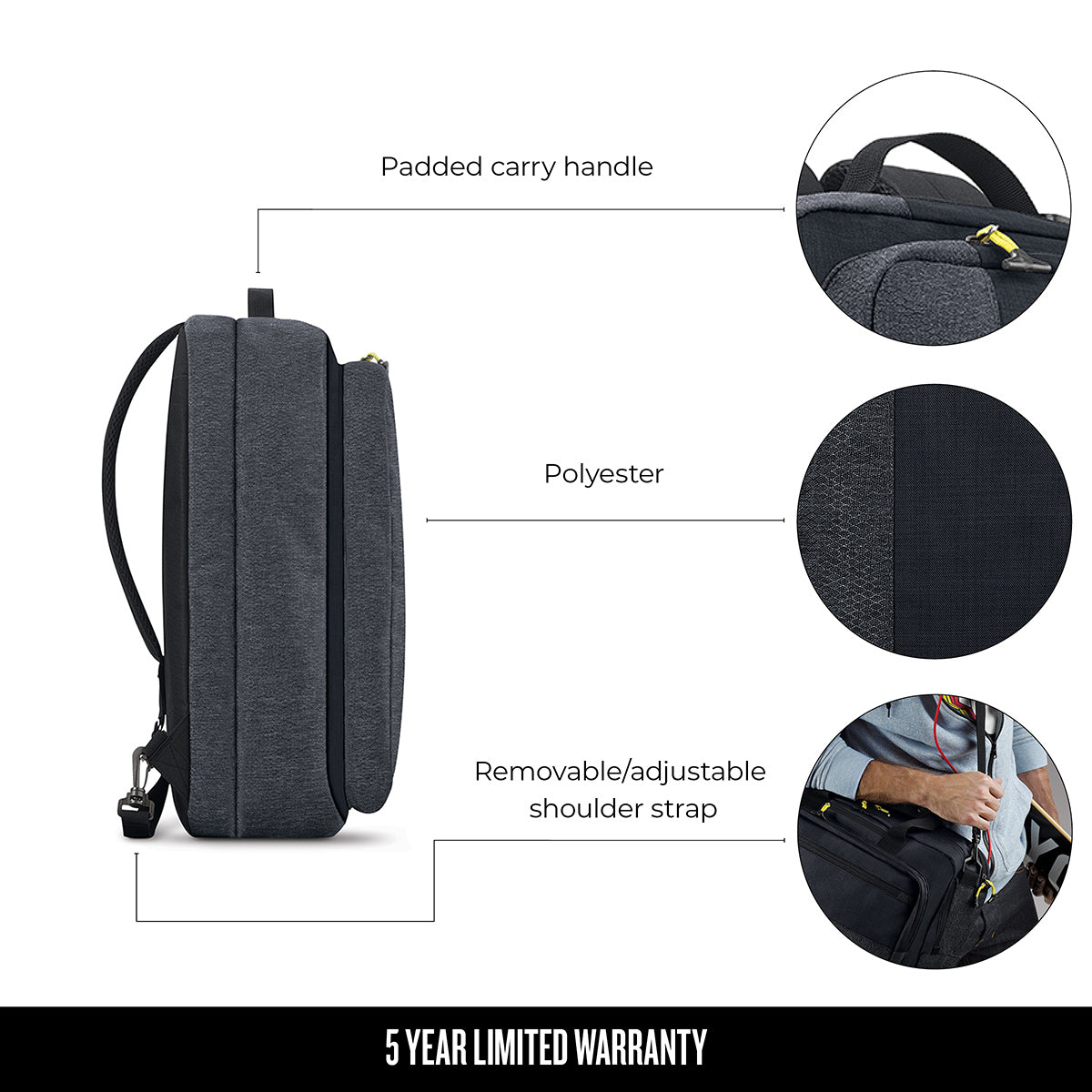 - Removable/adjustable shoulder strap