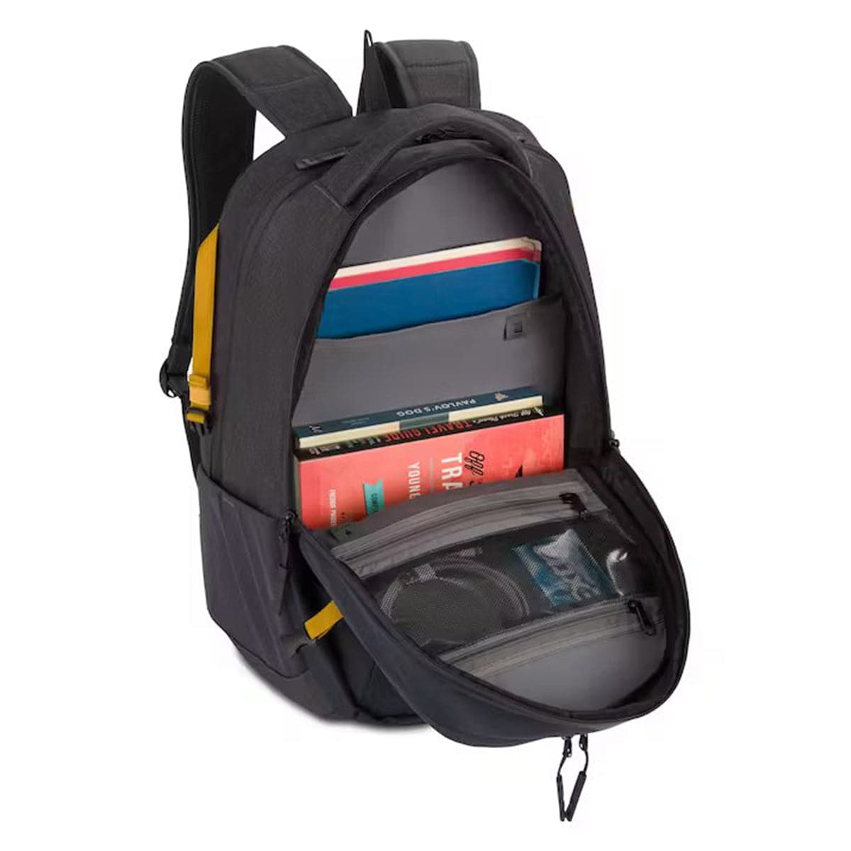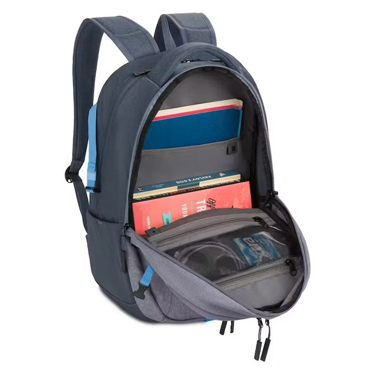 - Spacious middle compartment for books and files, featuring two large, zippered pockets for better organization