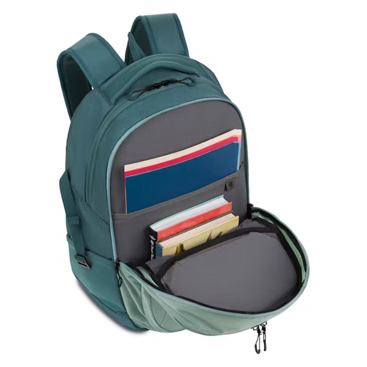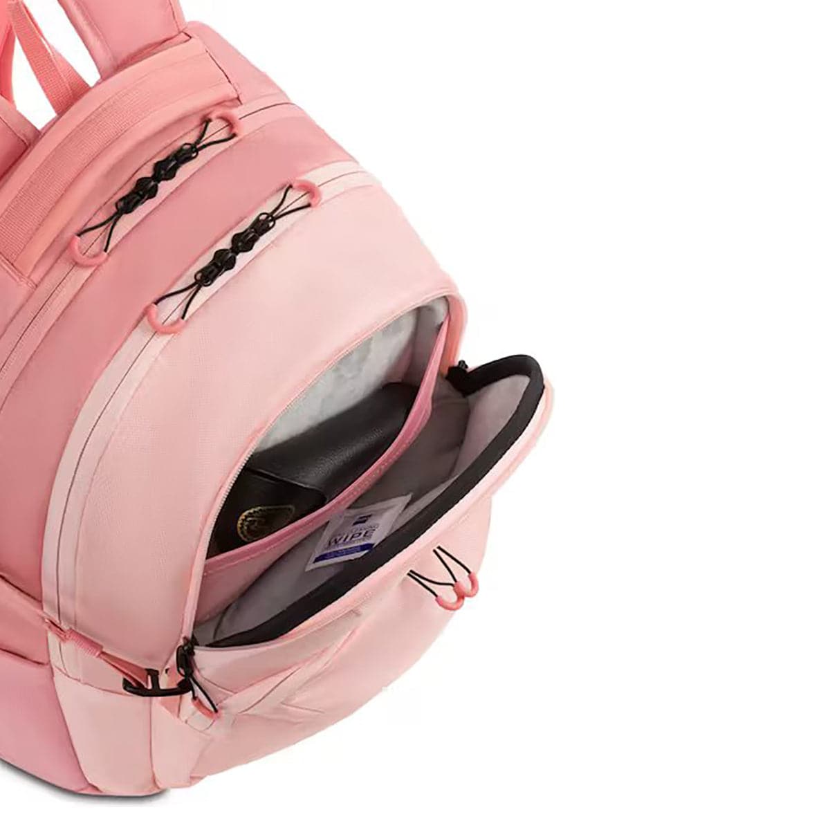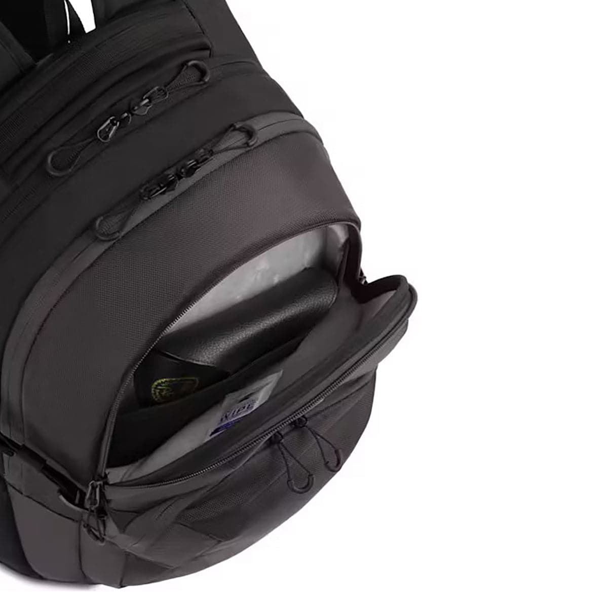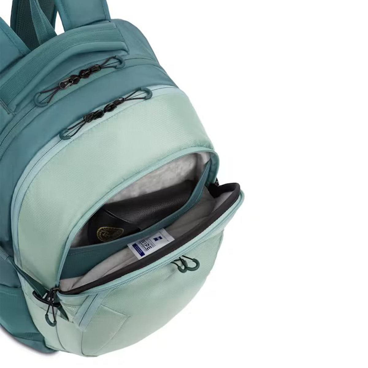 - Exterior front, felt-lined, hard-shell compartment with inner mesh pocket protects eyewear