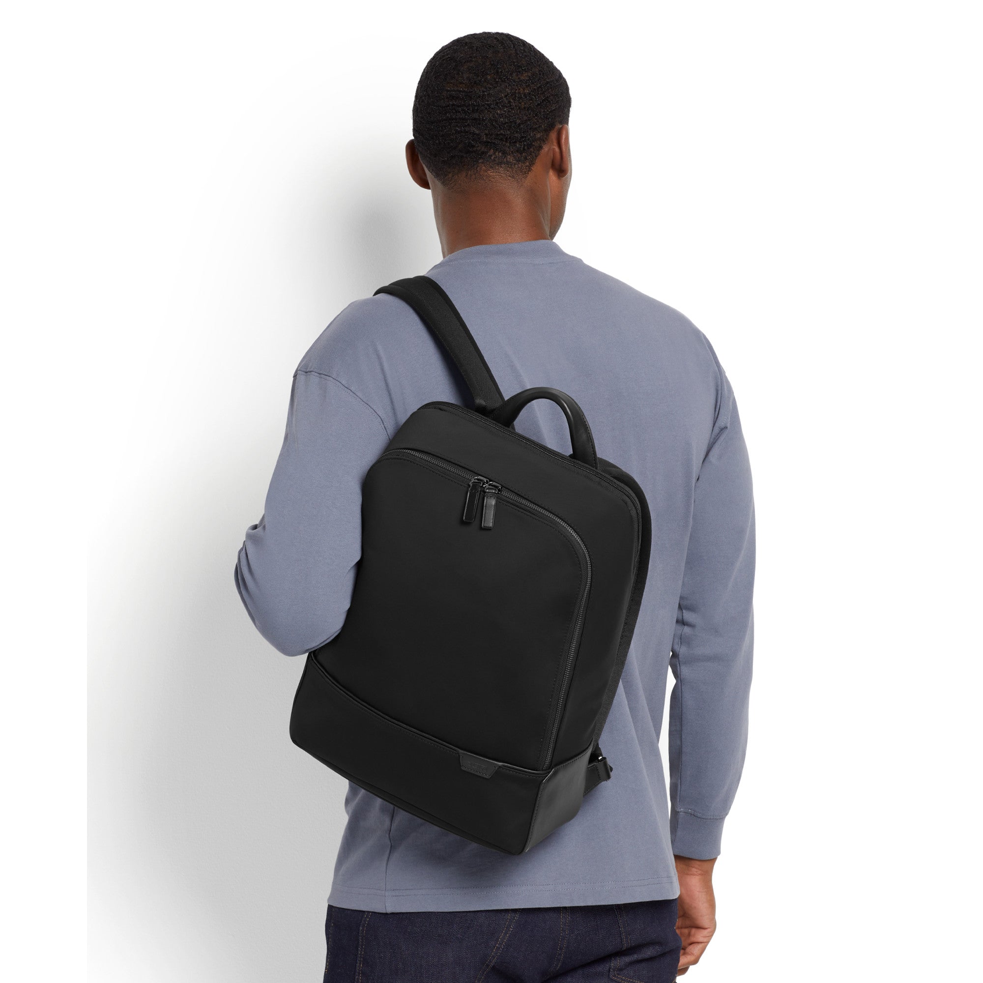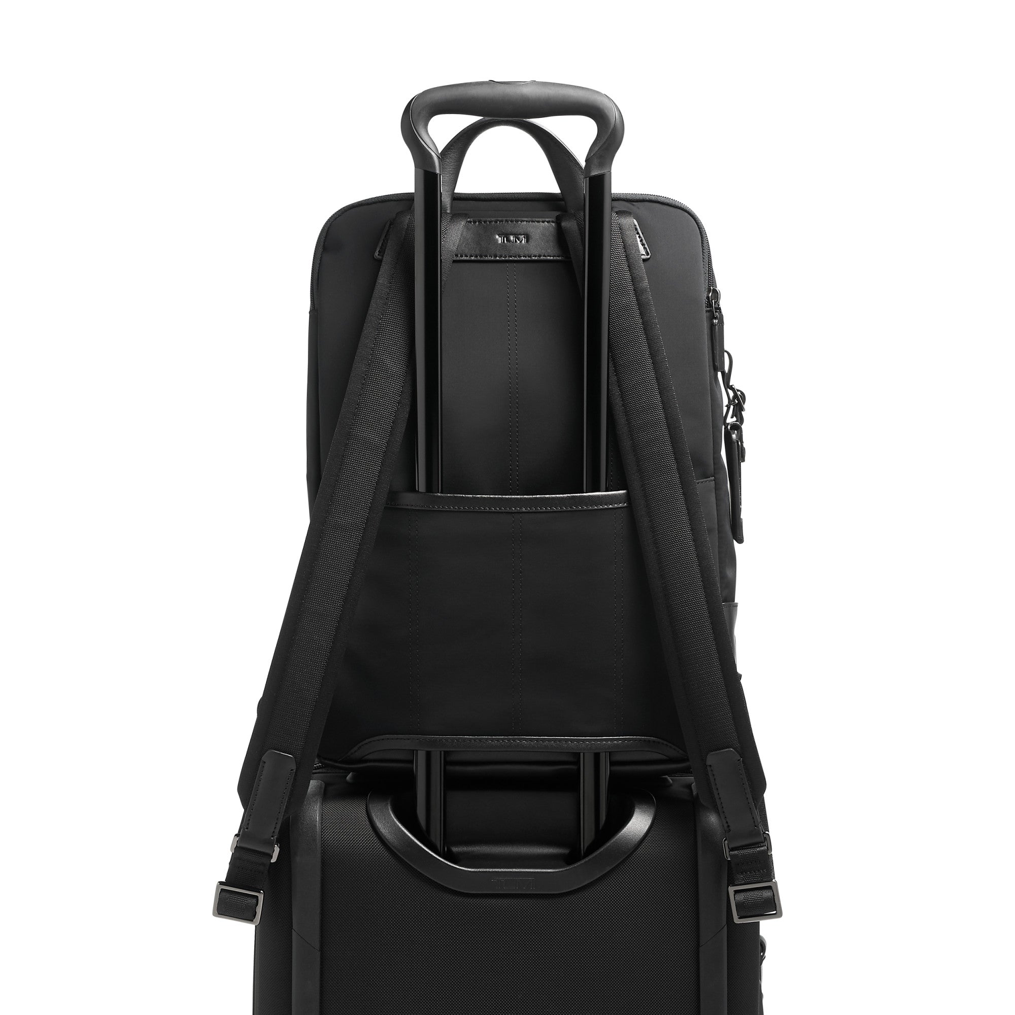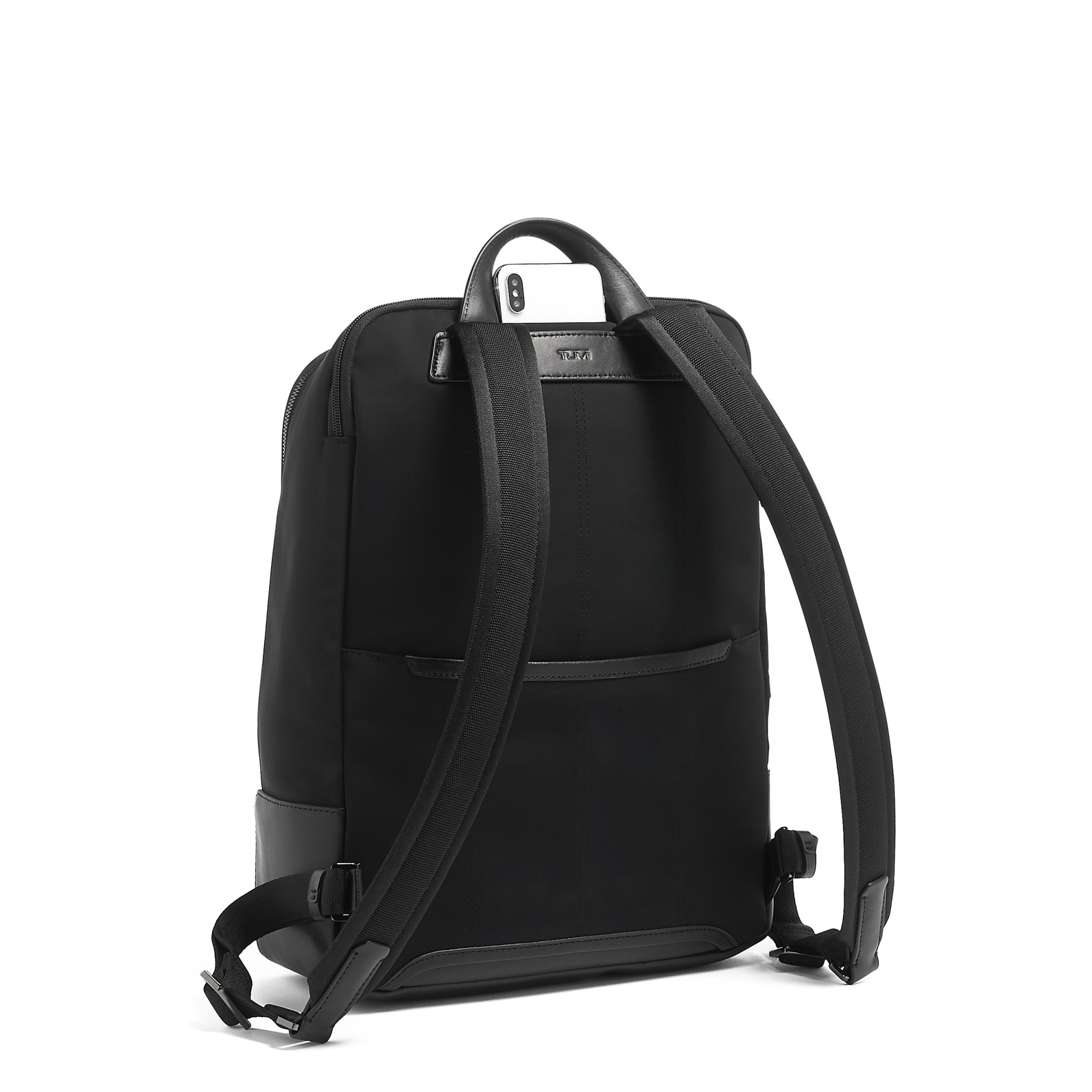 - Leather-accented adjustable backpack straps