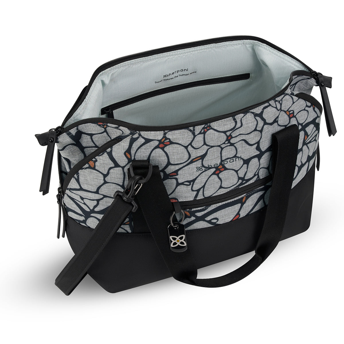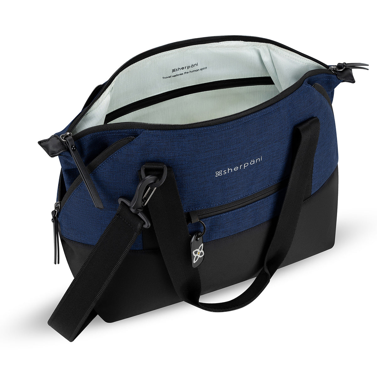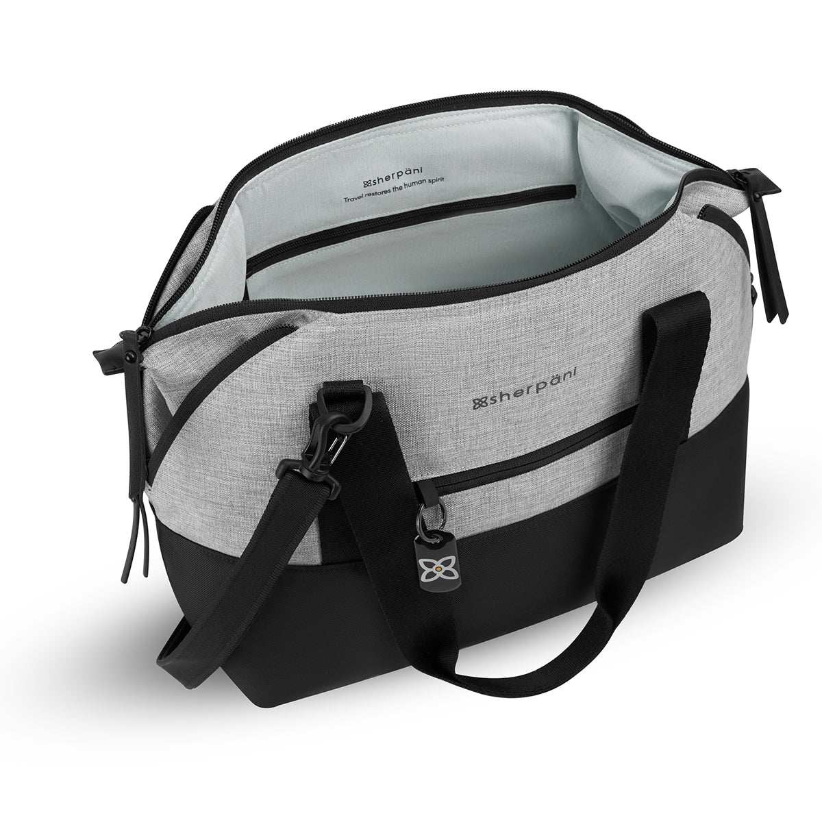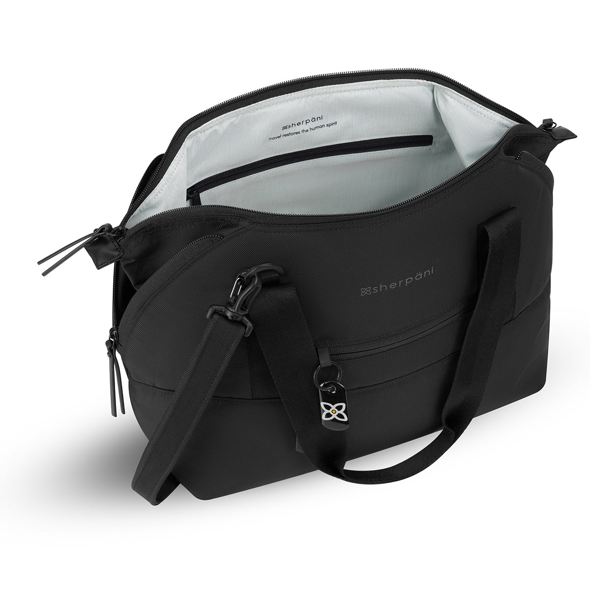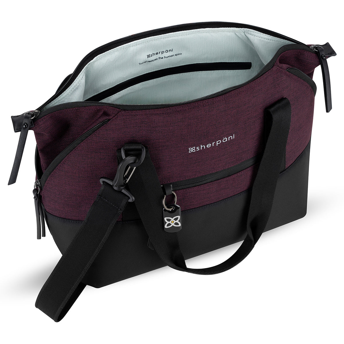 The Eclipse features a trendy shape with unique corner zippers that expand the size of the bag. This extra space is handy when you’re coming home from vacation and need extra room to store those souvenirs. The Eclipse is made from recycled material and includes Sherpani anti-theft technology: Locking zippers, RFID protection, a wire-loop chair lock, a cut-proof crossbody strap, a returnme tag and a slash-proof bottom.