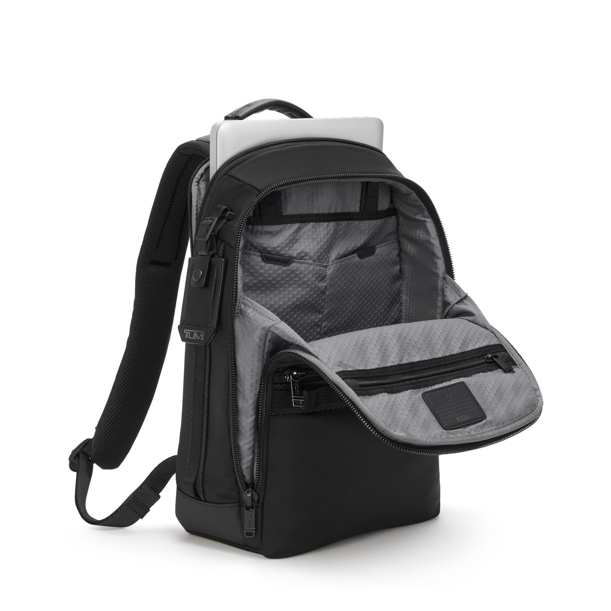 - Daisy chains on the front, shoulder straps, and side gussets are compatible with TUMI+