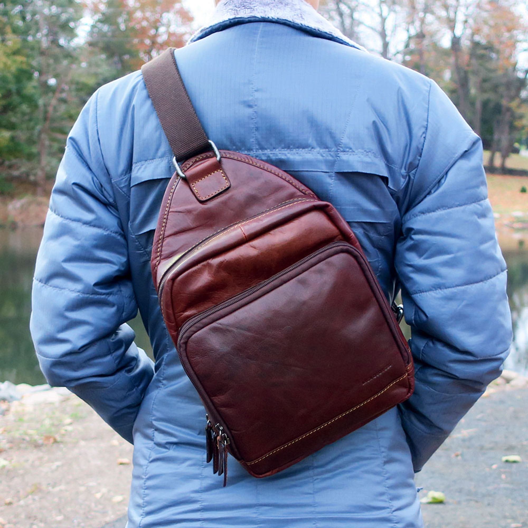 The sling bag is great for carrying your must-have essentials while you're on the go. Made from hand-stained buffalo leather, the leather will build a rich patina as it ages. The bag offers space for your mobile device, tablet, wallet, notepad, documents, charging cord, and power adapters. It features an adjustable shoulder strap that can be hooked to the right side or left side of the bag, depending on your preference.