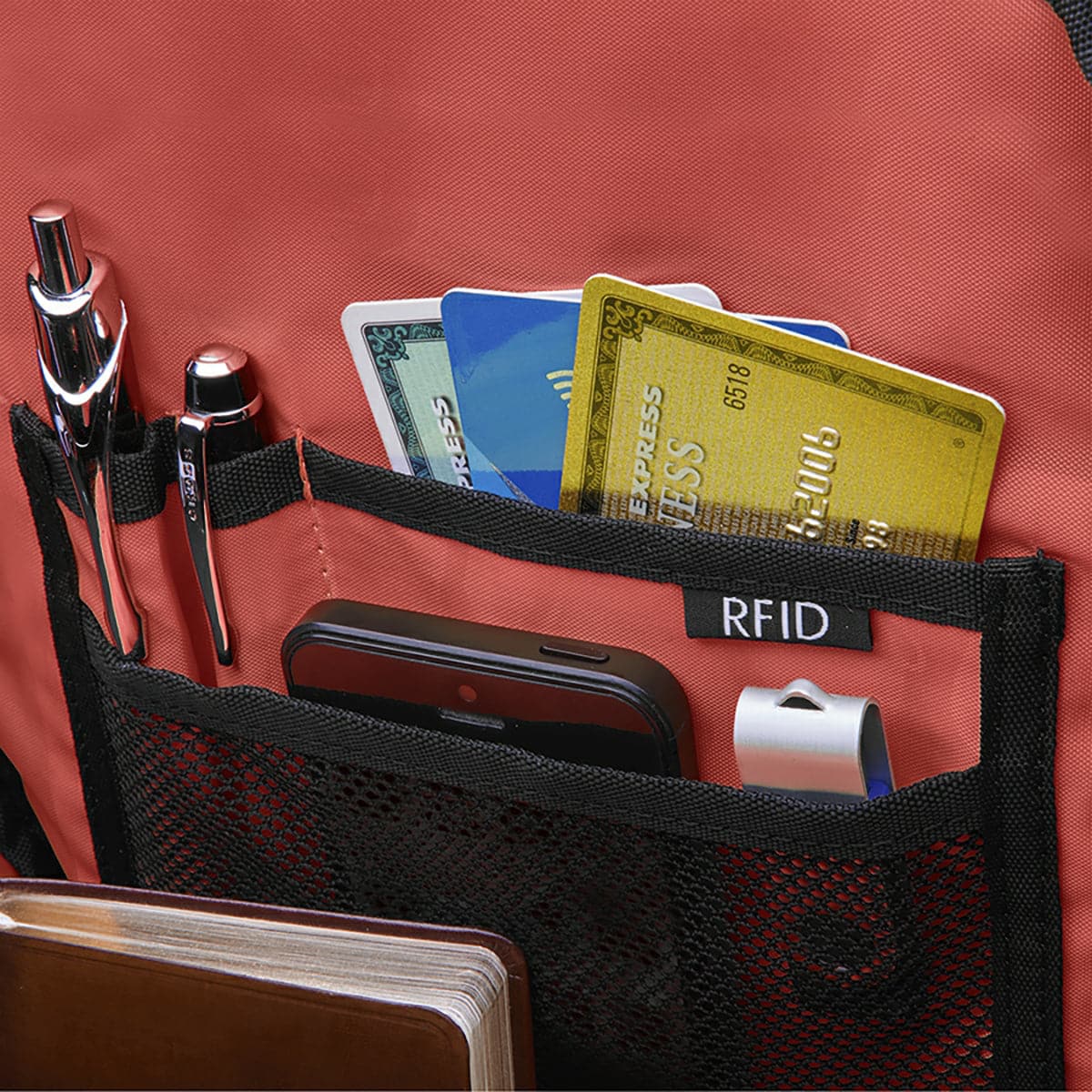 - RFID data protection pocket helps secure personal data encoded on your credit cards, IDs and passports