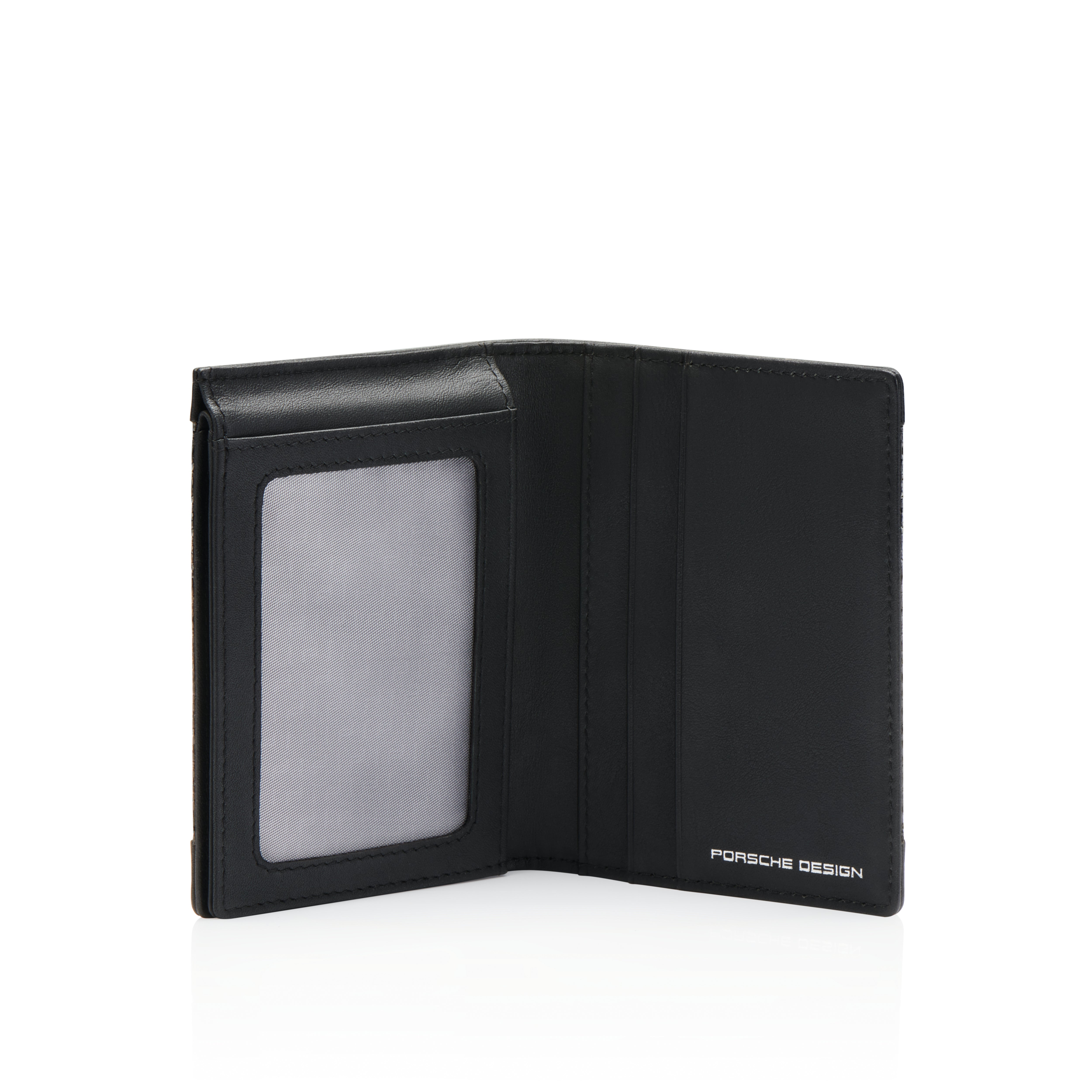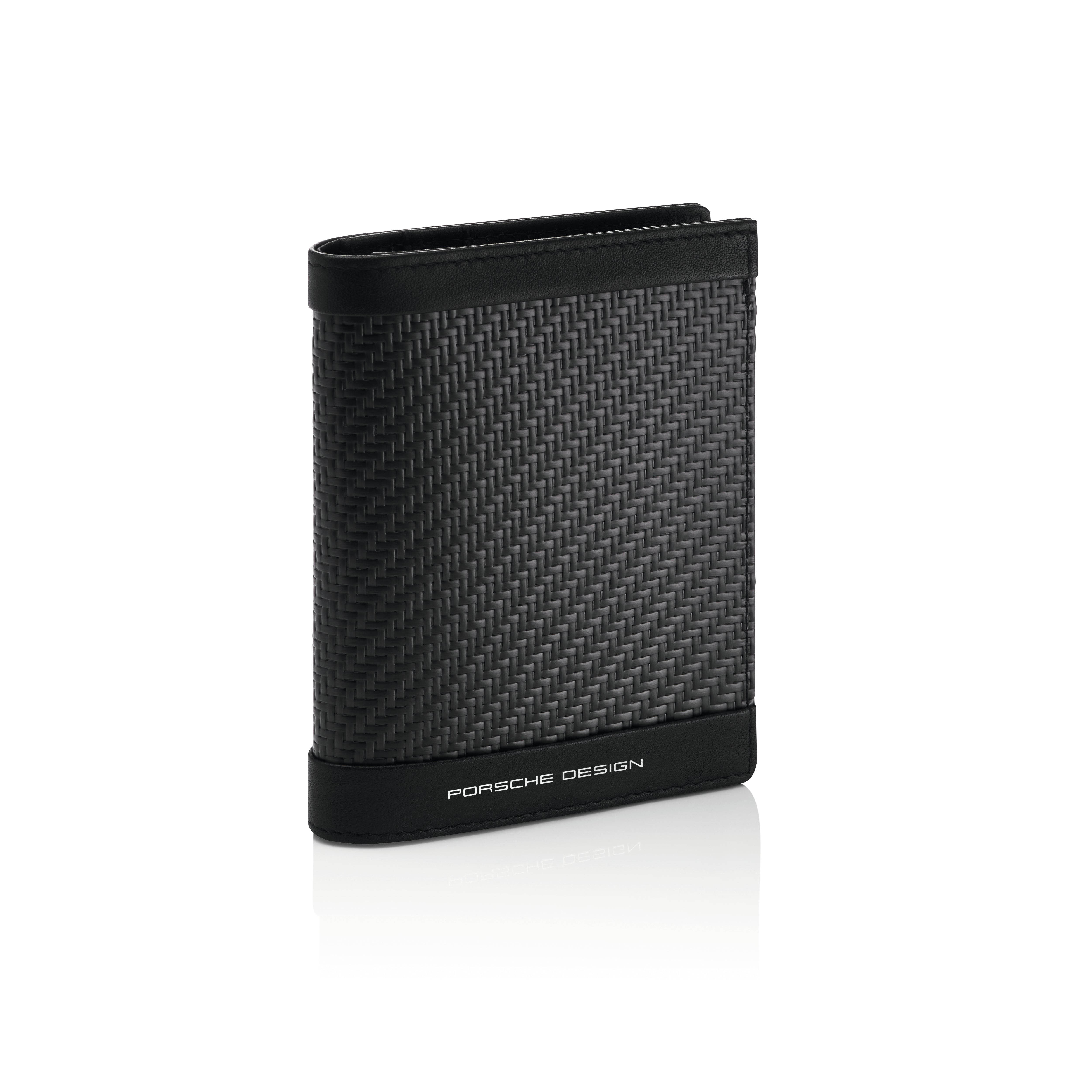 Fascination with carbon. The high-tech material from motorsports gives the Porsche Design Carbon collection its unmistakable DNA design. The compact Carbon Billfold 6 merges the lightness and extreme performance of Carbitex carbon with minimalistic design in a special format and maximum functionality. Details made of exclusive black nappa leather accentuate the technical structure and emphasize the unmistakable character. Since the wallet can be folded vertically and horizontally, all compartments are easily accessible, but keep your bills safe. The men's wallet offers space for all important cards and receipts with six interior credit card slots, a compartment for bills, a mesh compartment for IDs on the inner right and three larger pockets for items such as business cards.