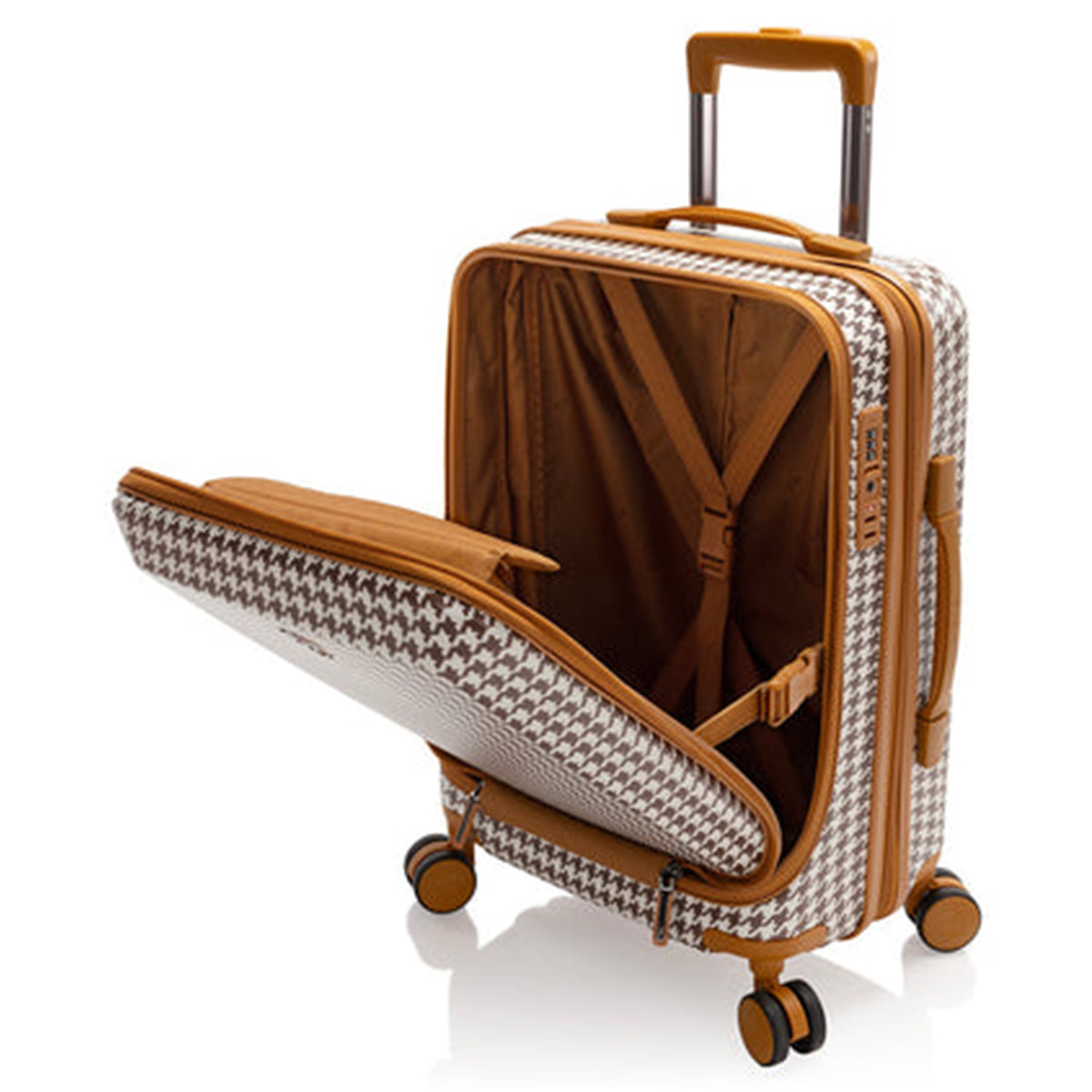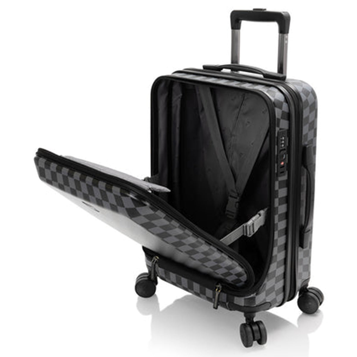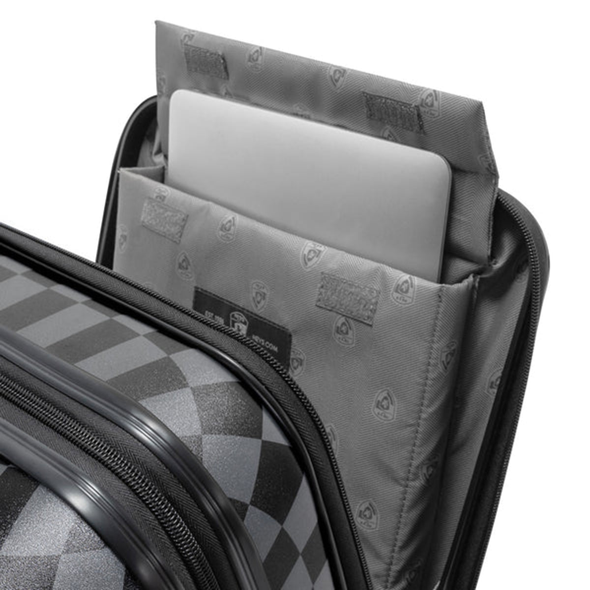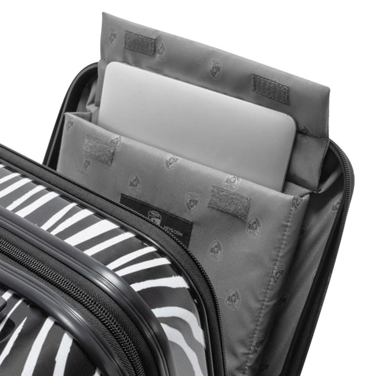- 21" carry-on size features a Patented Front Access design with quick and easy access to a foam-padded laptop pocket conveniently located on the front of the luggage. The pocket fits up to 15.6” widescreen laptops