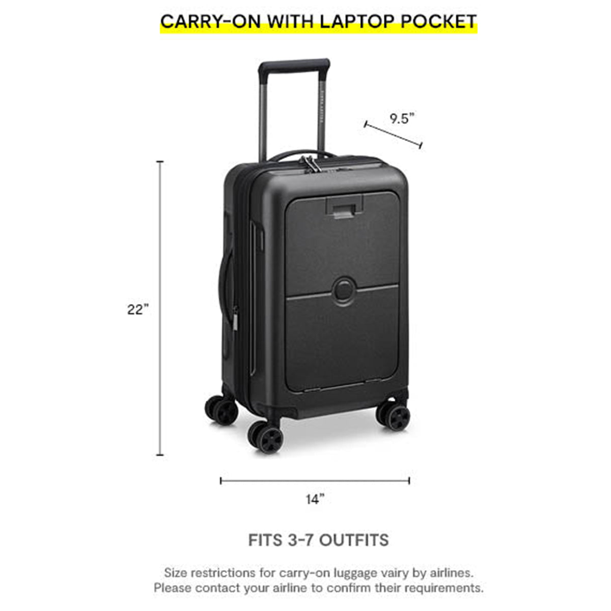 - Seamlessly open front door using slider button on top, allowing access to personal items such as a laptop without opening up your luggage (sleeve for laptop up to 14")