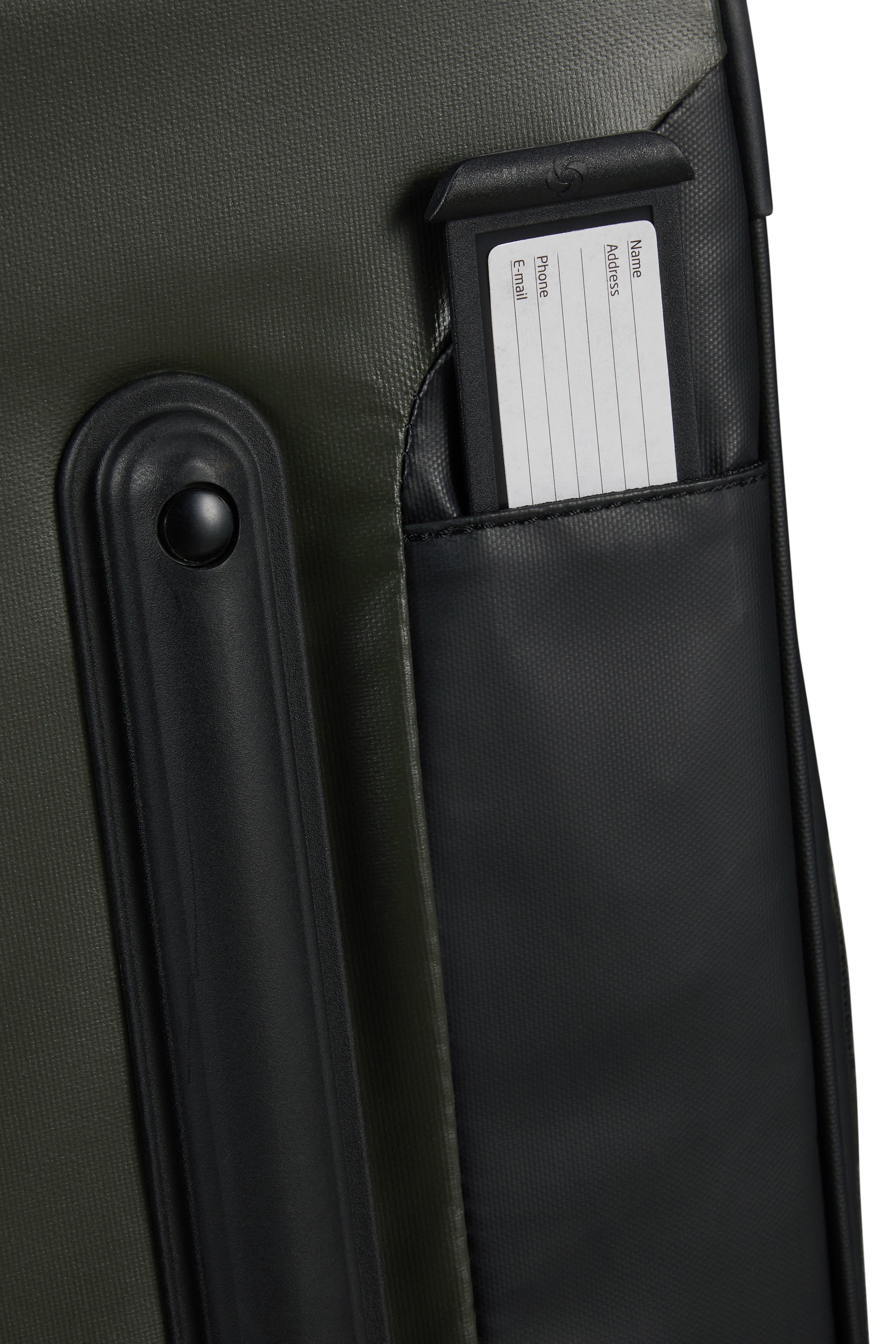 - Top, side & bottom handles made with recycled materials and water-resistant fabric