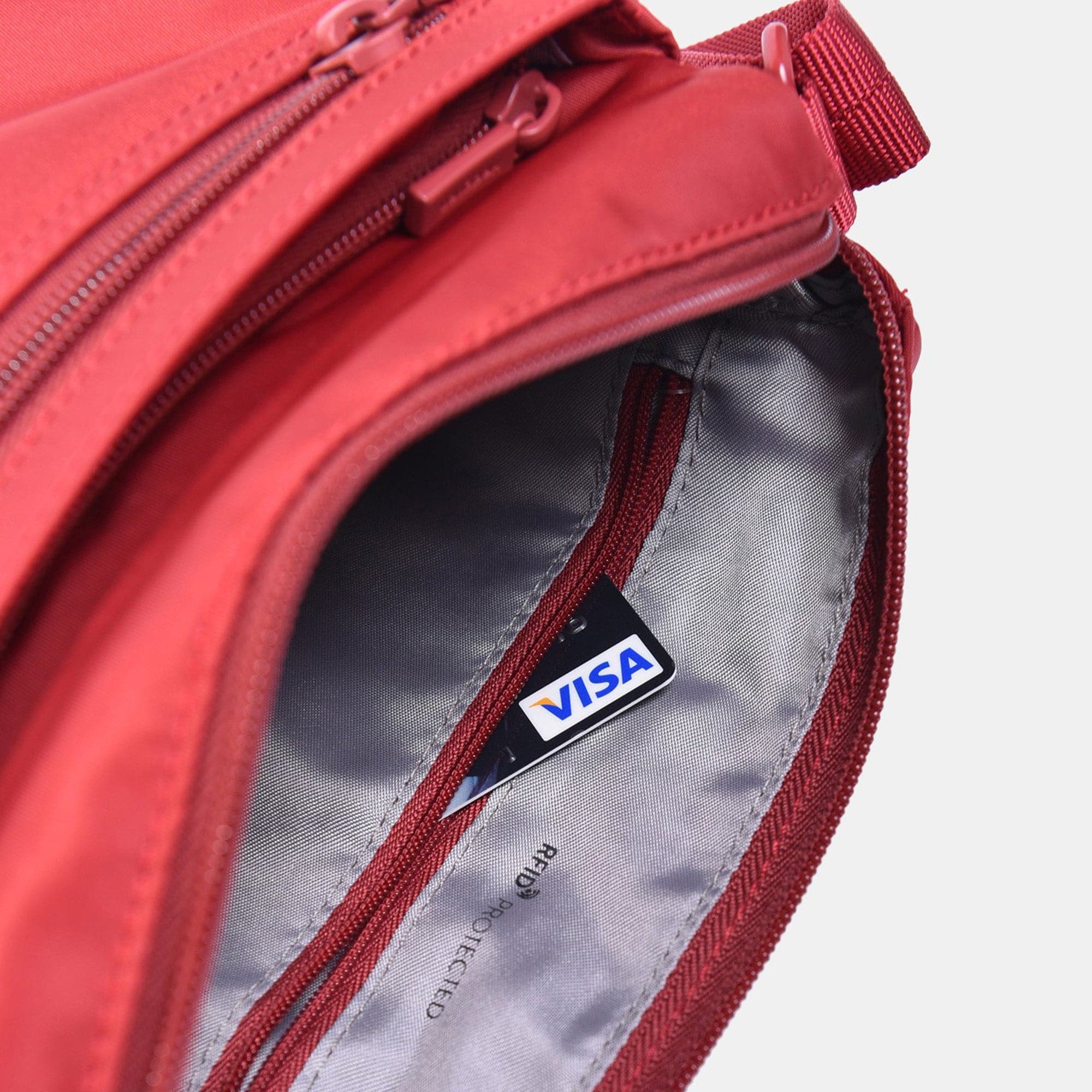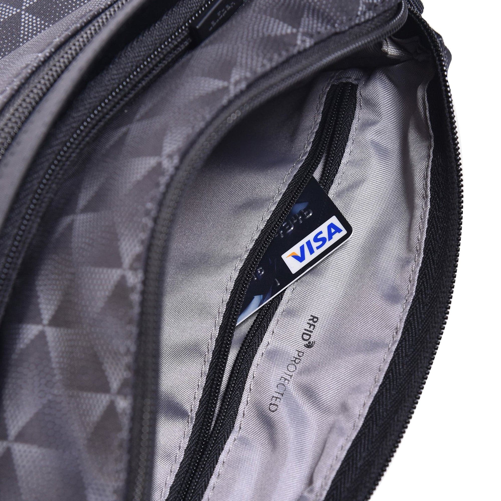 - One interior zipped pocket with RFID blocking material