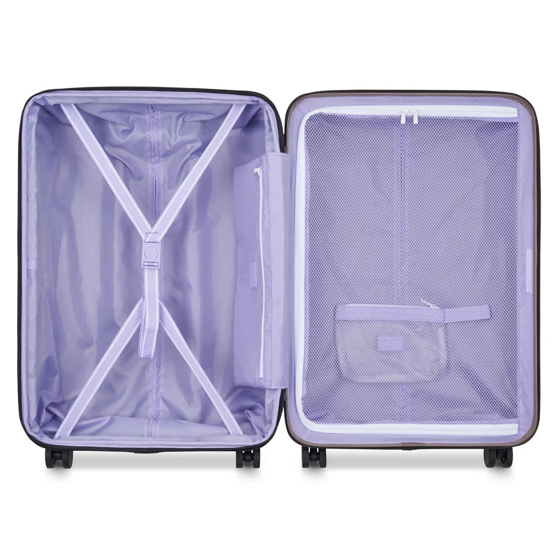 - Organized On the Inside: The interior is all about keeping your things in check: tie-down straps to secure your outfits, a fly pocket for those grab-and-go items, a mesh divider to keep everything neat and tidy, and a bonus removable wet pouch for toiletries, skincare, or anything that needs its own spill-proof space