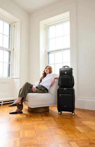 - Chic details and padded straps ensure comfort, whether you’re desk-bound or airport-bound