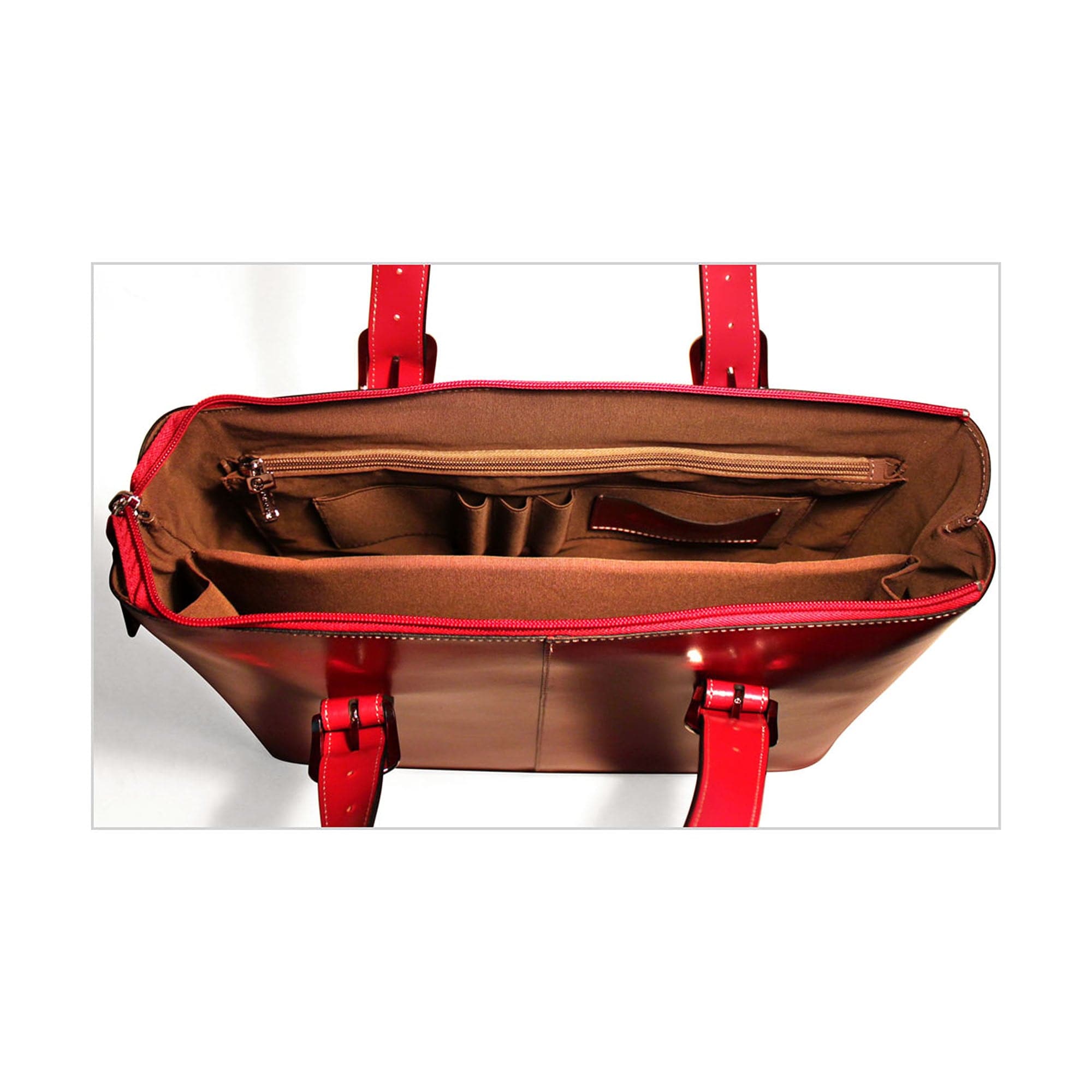 Perfect for the commute to and from the office, this tote bag is dressed with pockets to organize all of your most important items. The Milano Madison Avenue Business Tote is made from smooth scratch & stain resistant Italian Leather and features a classic shape with adjustable shoulder straps and secure top zip closure. The bag is fully lined with a padded compartment that holds laptops with up to a 15.6" screen, and organizer pockets to hold your mobile device, cards, wallet, pens, accessories. A designated interior pocket provides a safe place for your iPad or tablet. It's a great bag for taking care of business.