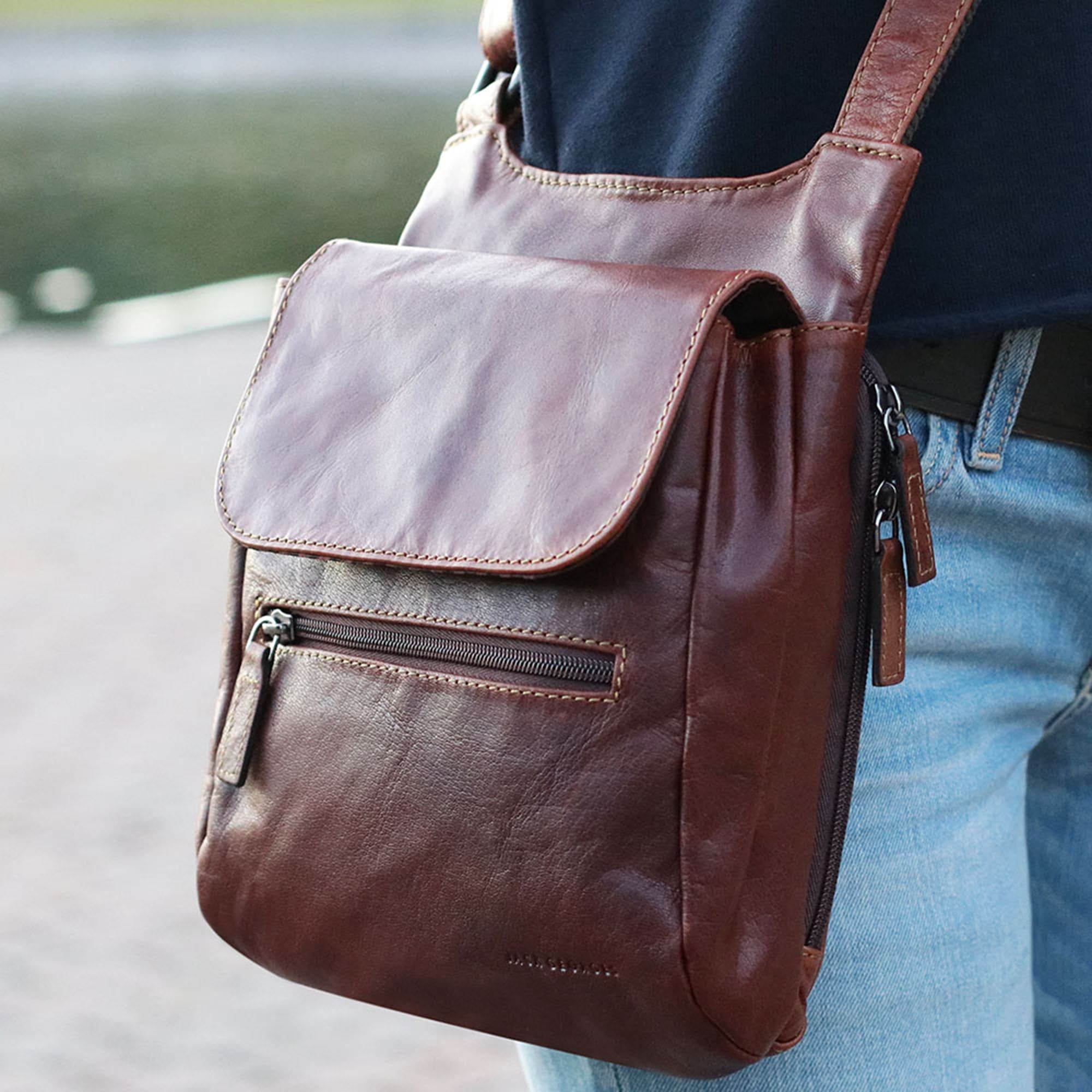 - Front compartment with flap closure