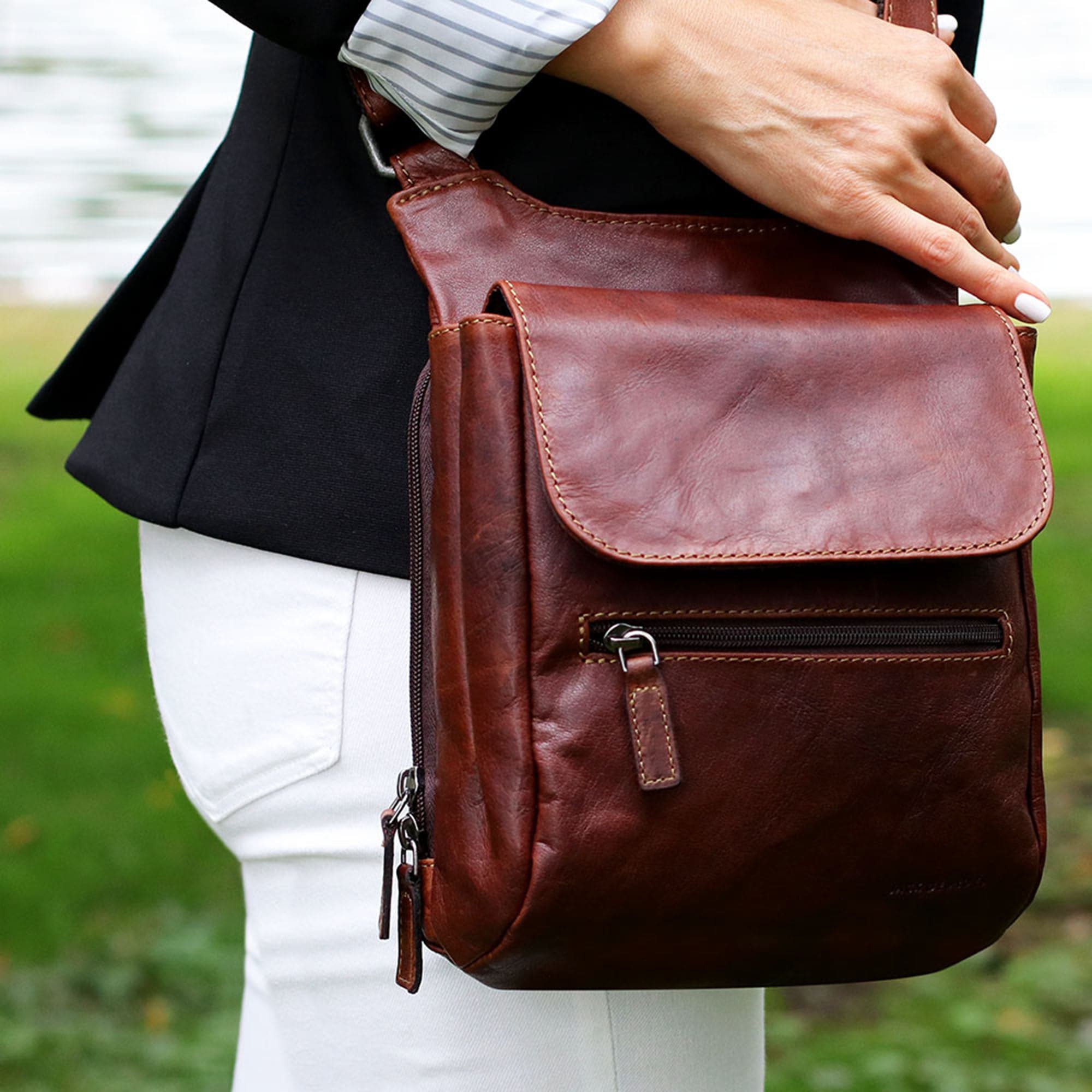 - Three-Way zip back pocket with organizer
