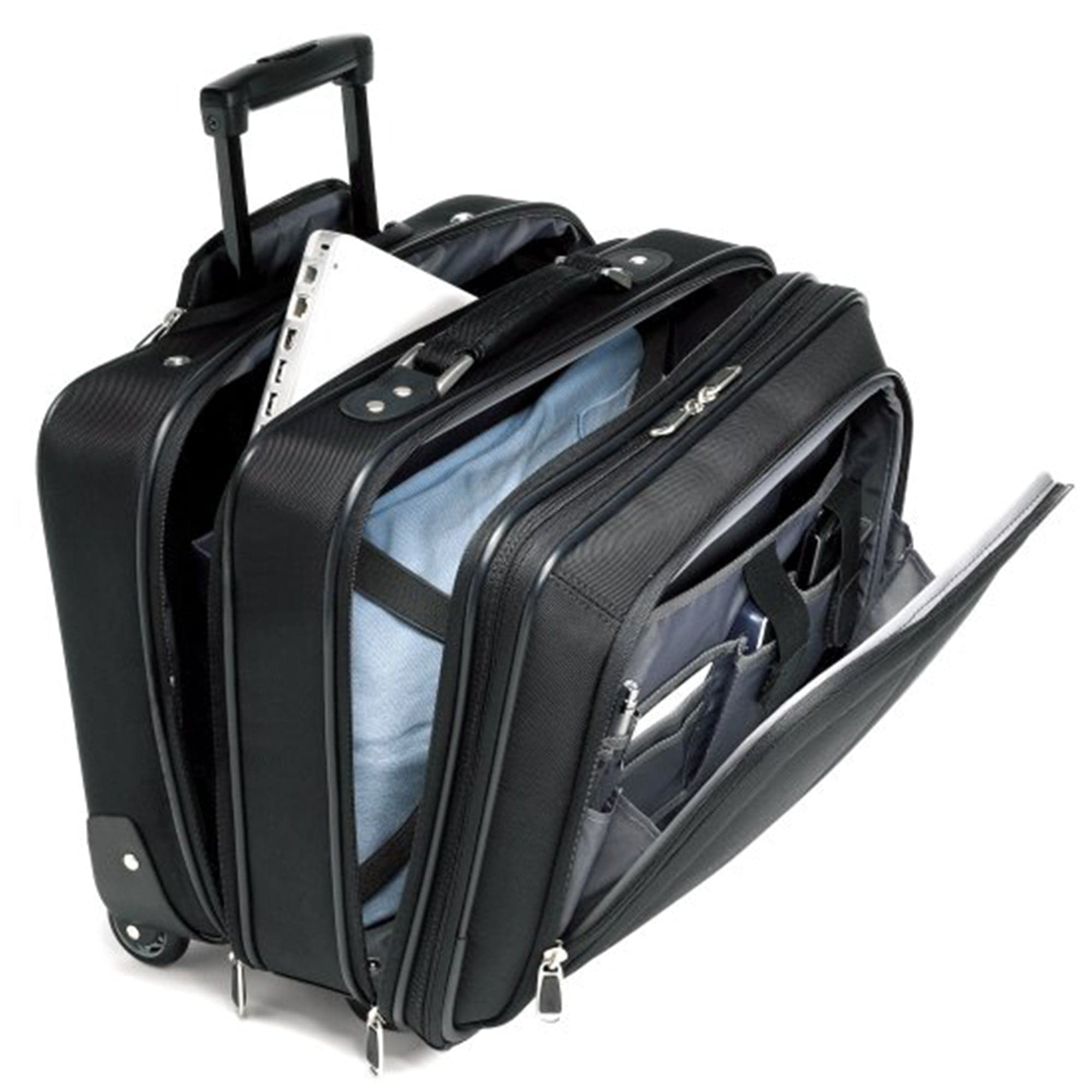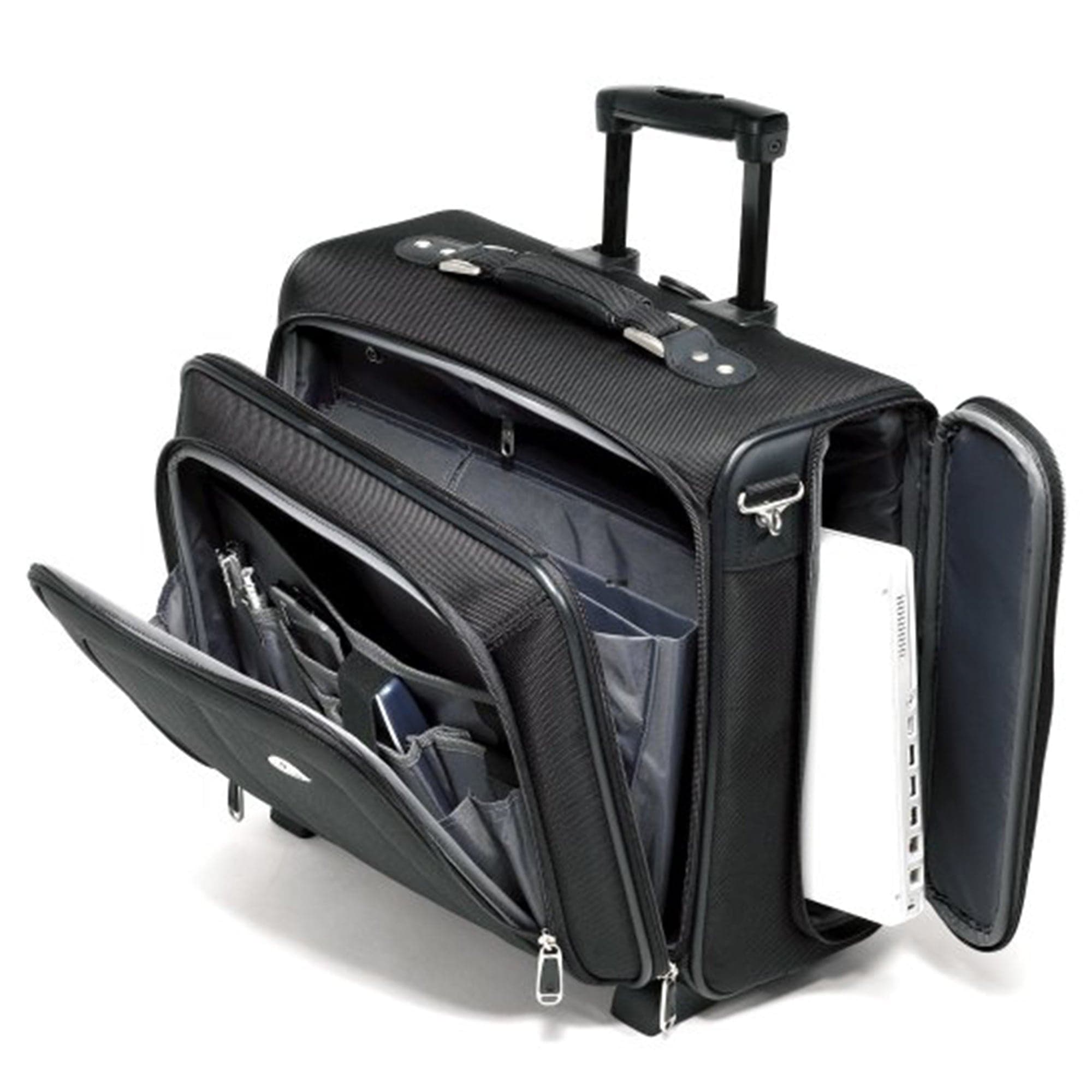 1680D Ballistic - Is a standard, even weave of durable nylon material originally specified by the Federal Government for military use. The term "denier" (D) refers to the size of the yarn used: the larger the denier, the bigger the yarn. Inline skate wheels - Are constructed of polyurethane with ball bearings to minimize frictional resistance, offer durability and reduced resistance for smooth rolling. Retractable handle - Provides easy maneuverability when extended out from the suitcase, and stores neatly inside when not in use. Locks in place in both the fully extended and stored positions for secure traveling. Laptop compartment - Is a built-in padded compartment designed to carry your laptop computer and help protect it from shocks while traveling.