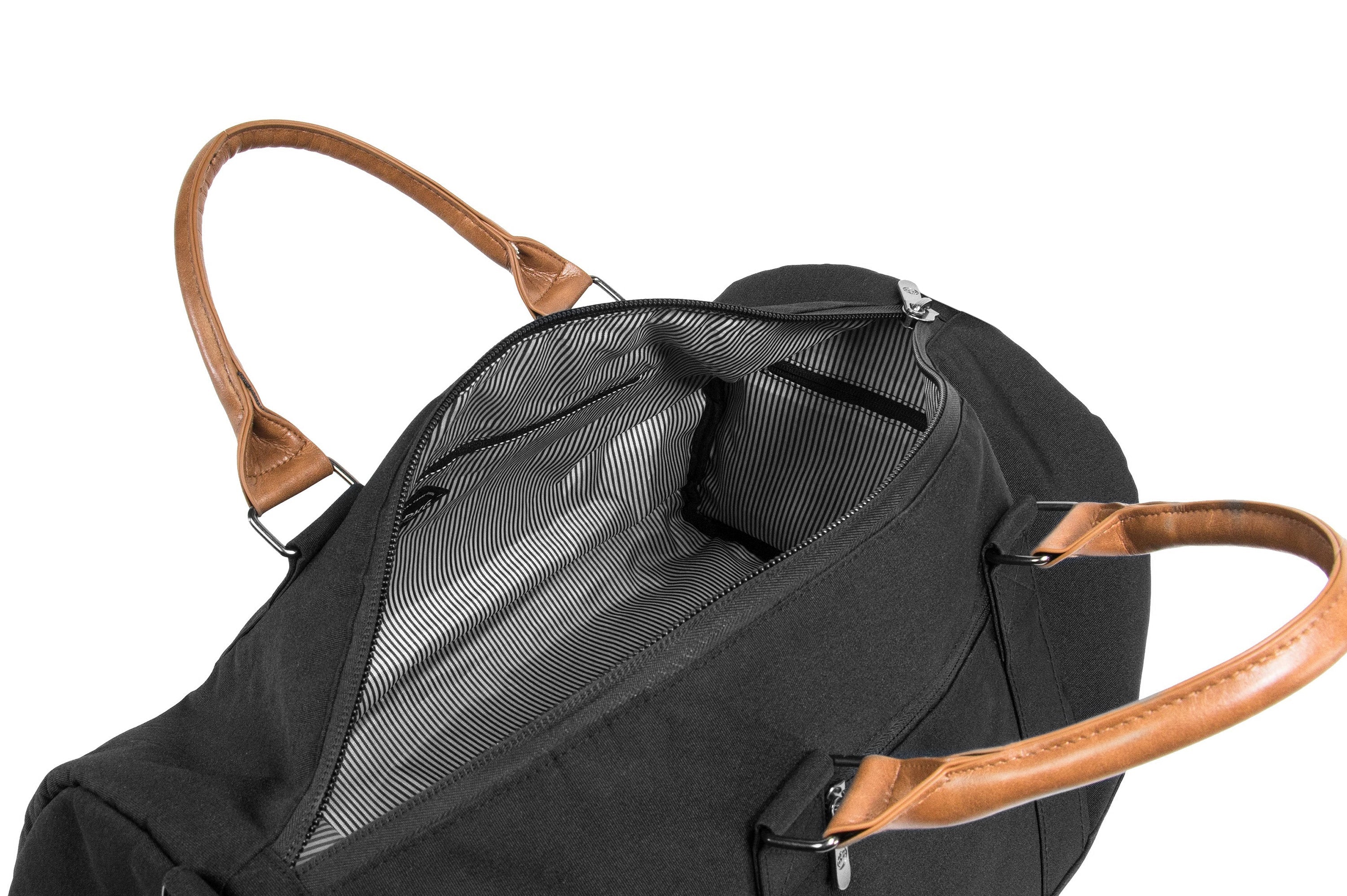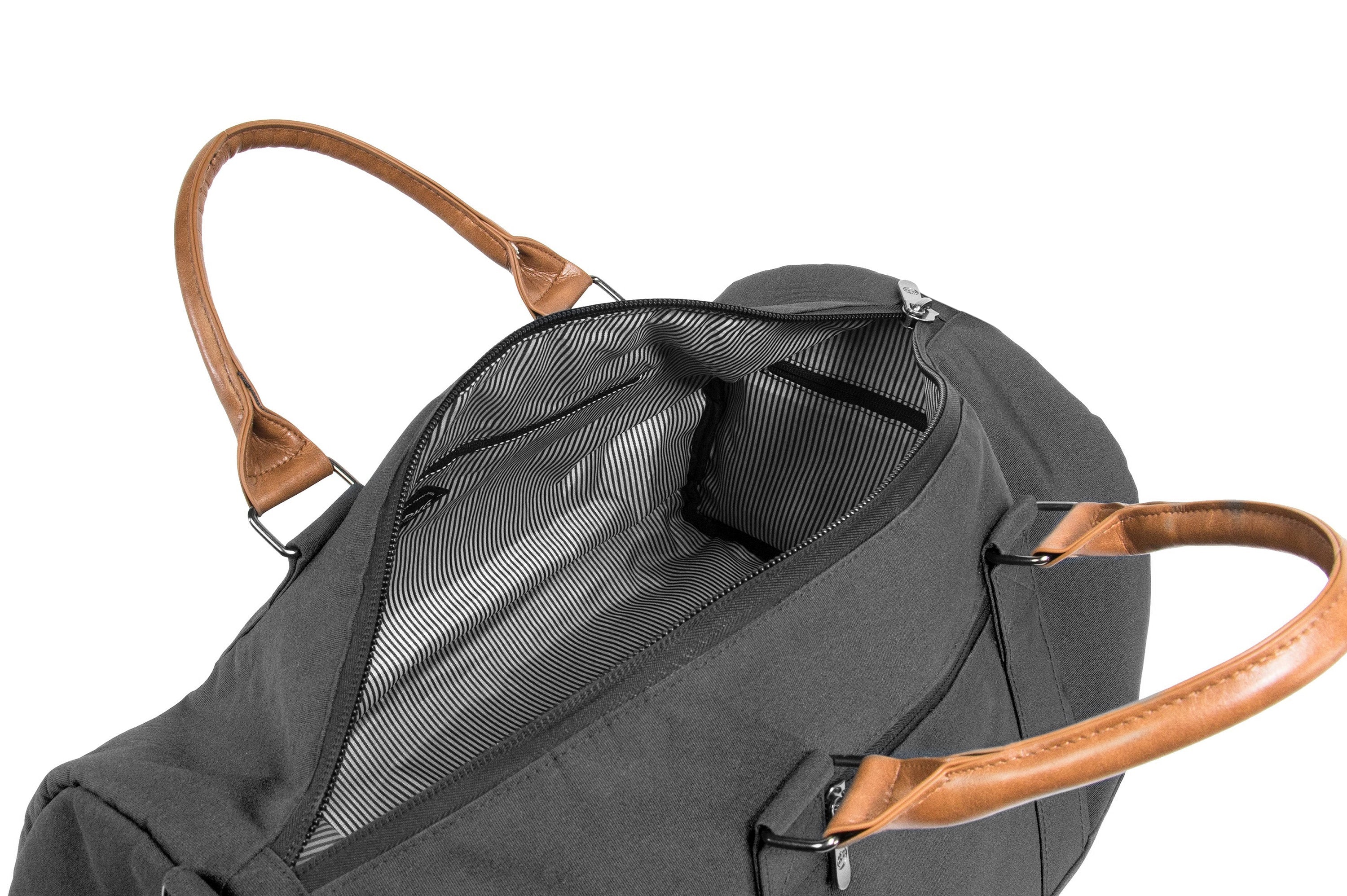 - 2 interior zippered storage pockets