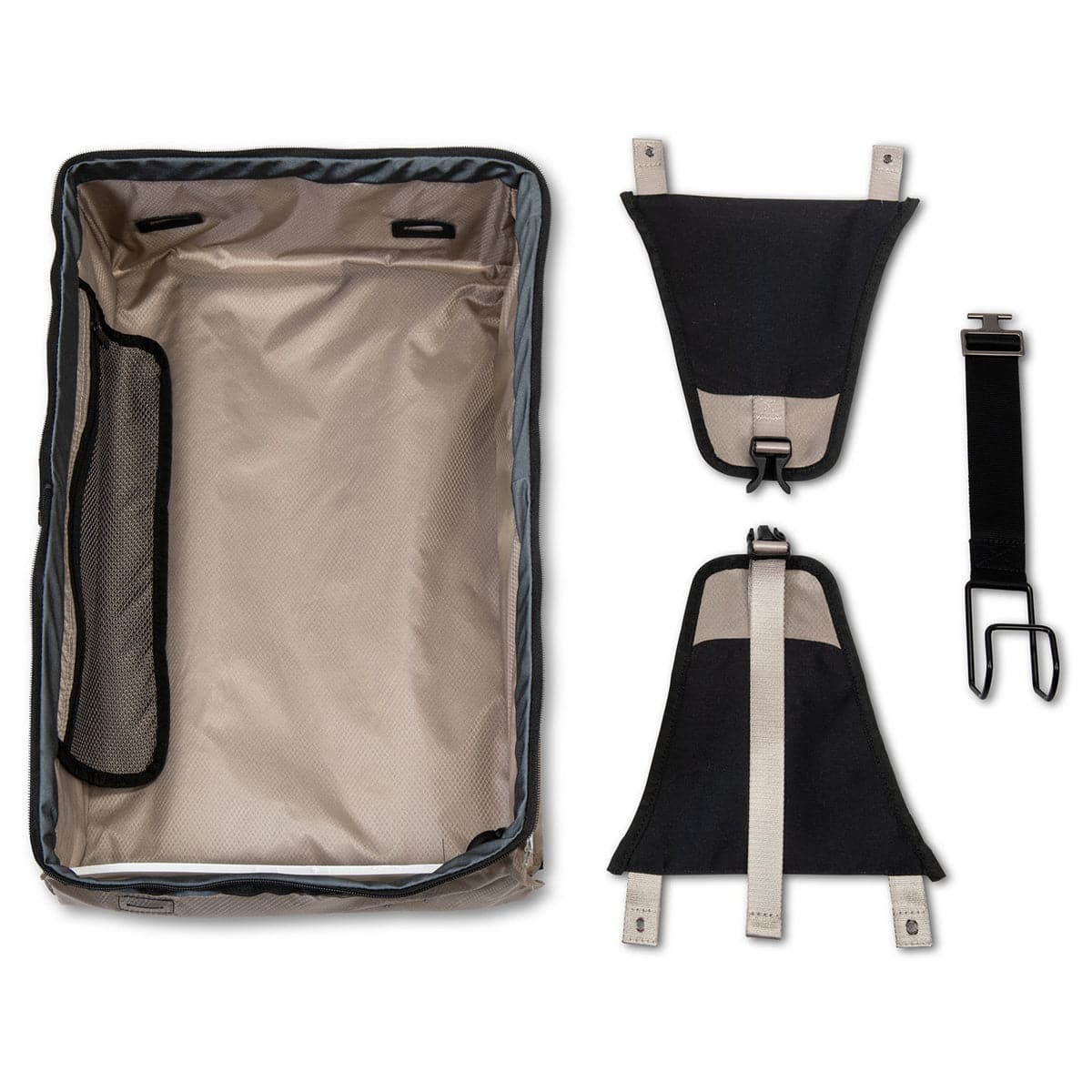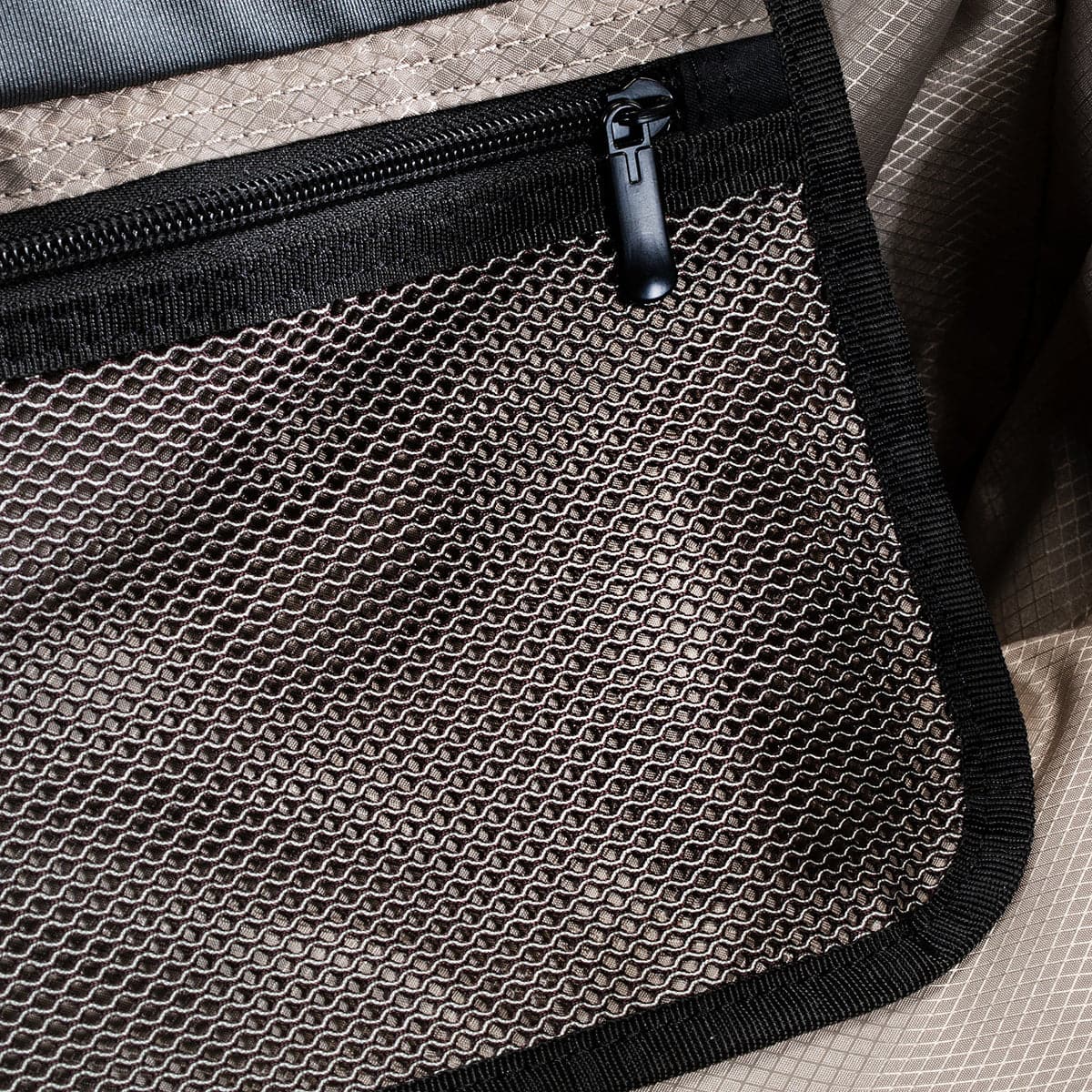 - Zippered mesh storage pockets