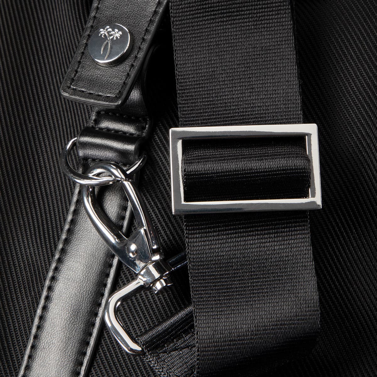 - Saffiano faux-leather trim