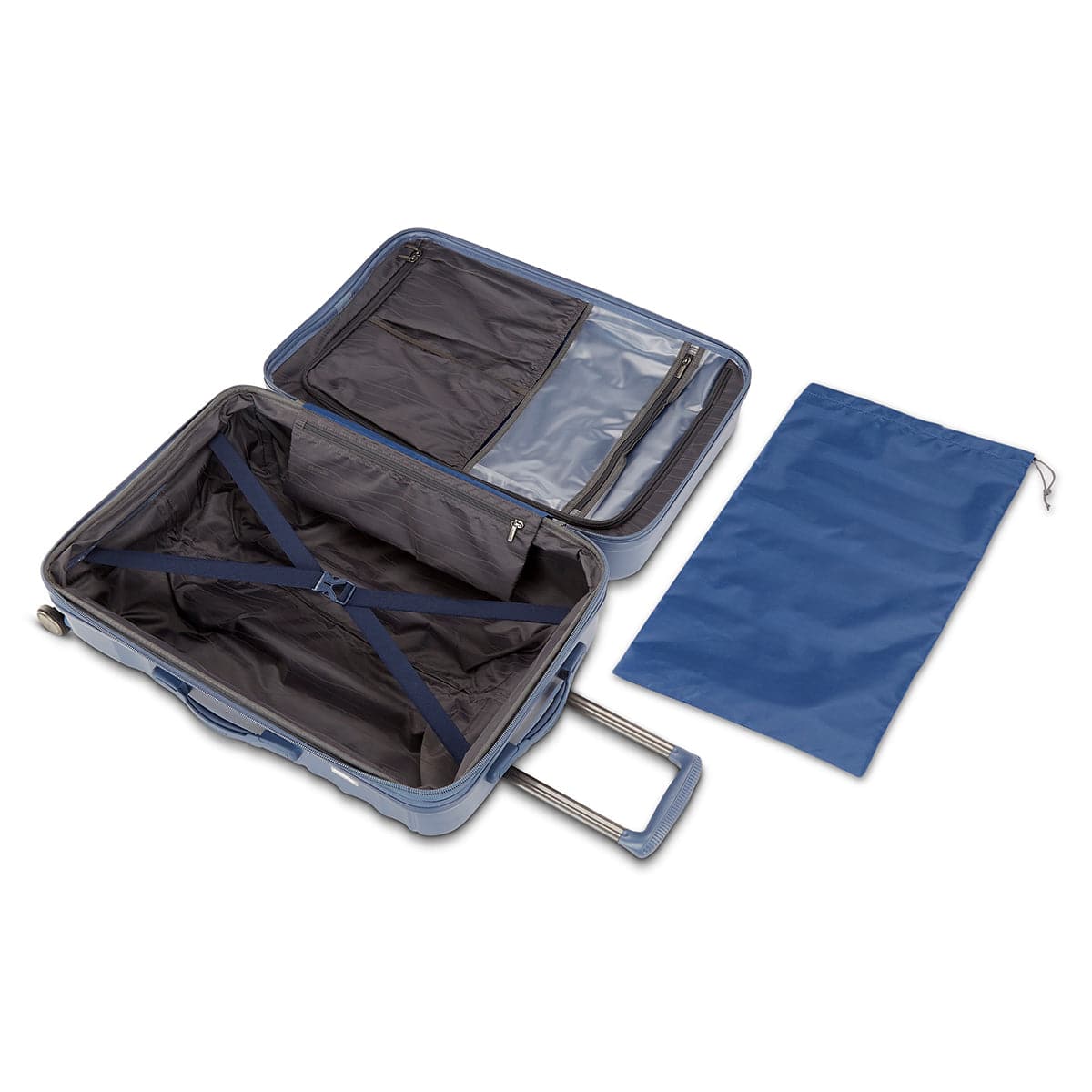 • Large split case packing, cross straps, wet pack pocket, shoe pockets