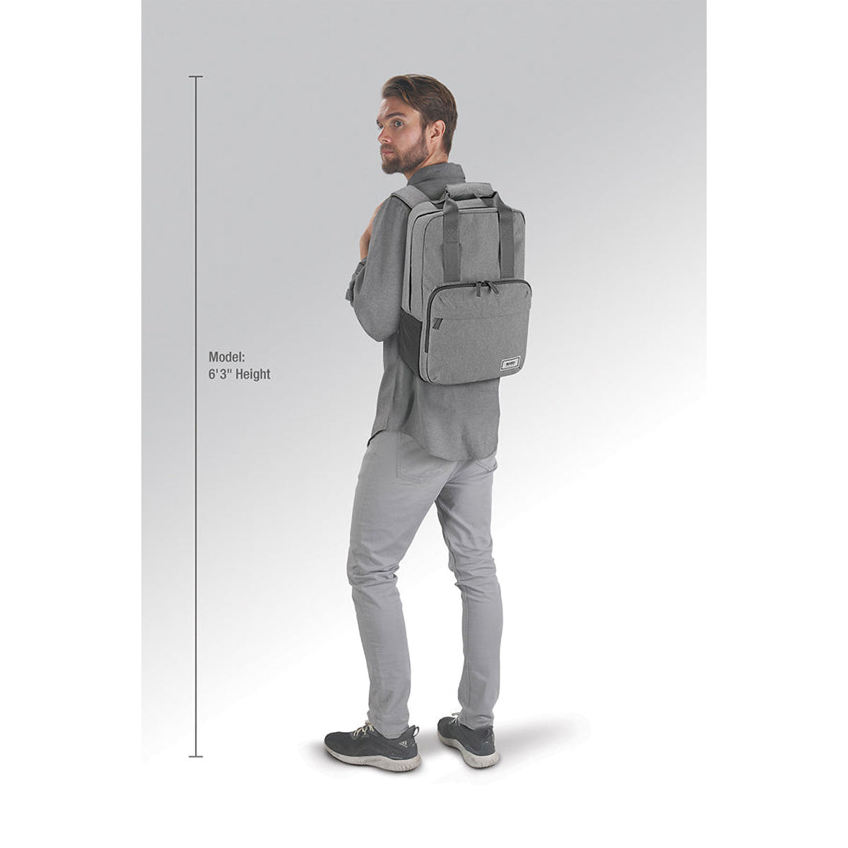 - Heathered grey material made from 6 recycled PET bottles