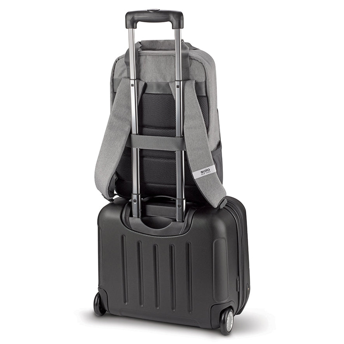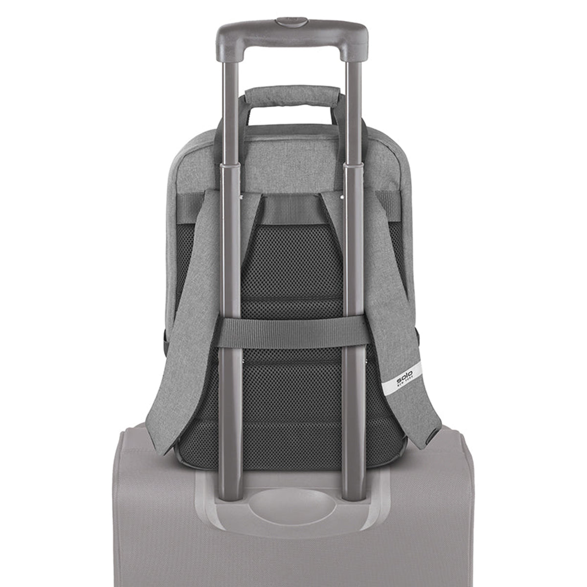 - Back strap slides over luggage handle