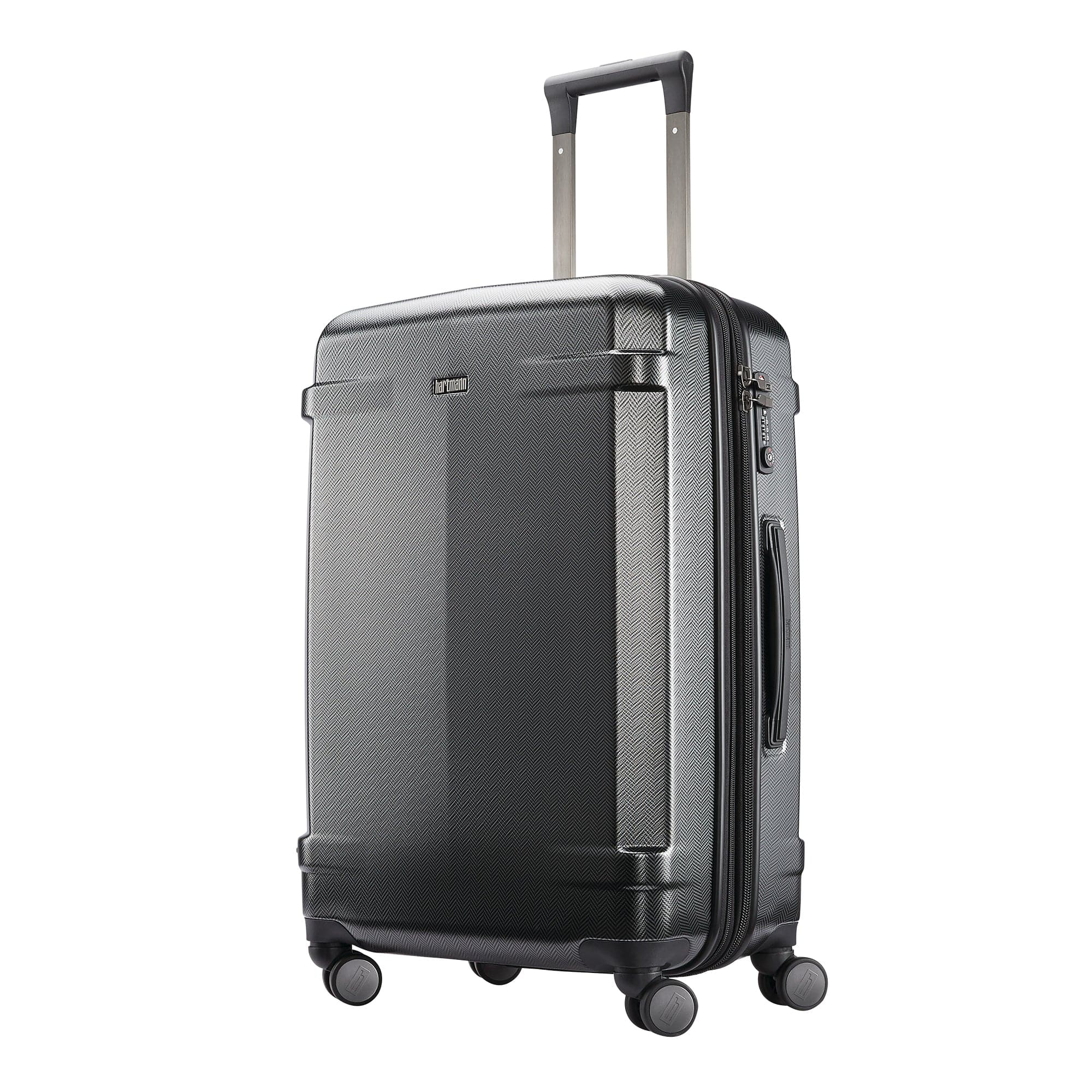 - Exterior: Durable 100% polycarbonate with metallic film and signature Hartmann print in sophisticated colors, recessed TSA lock for added security