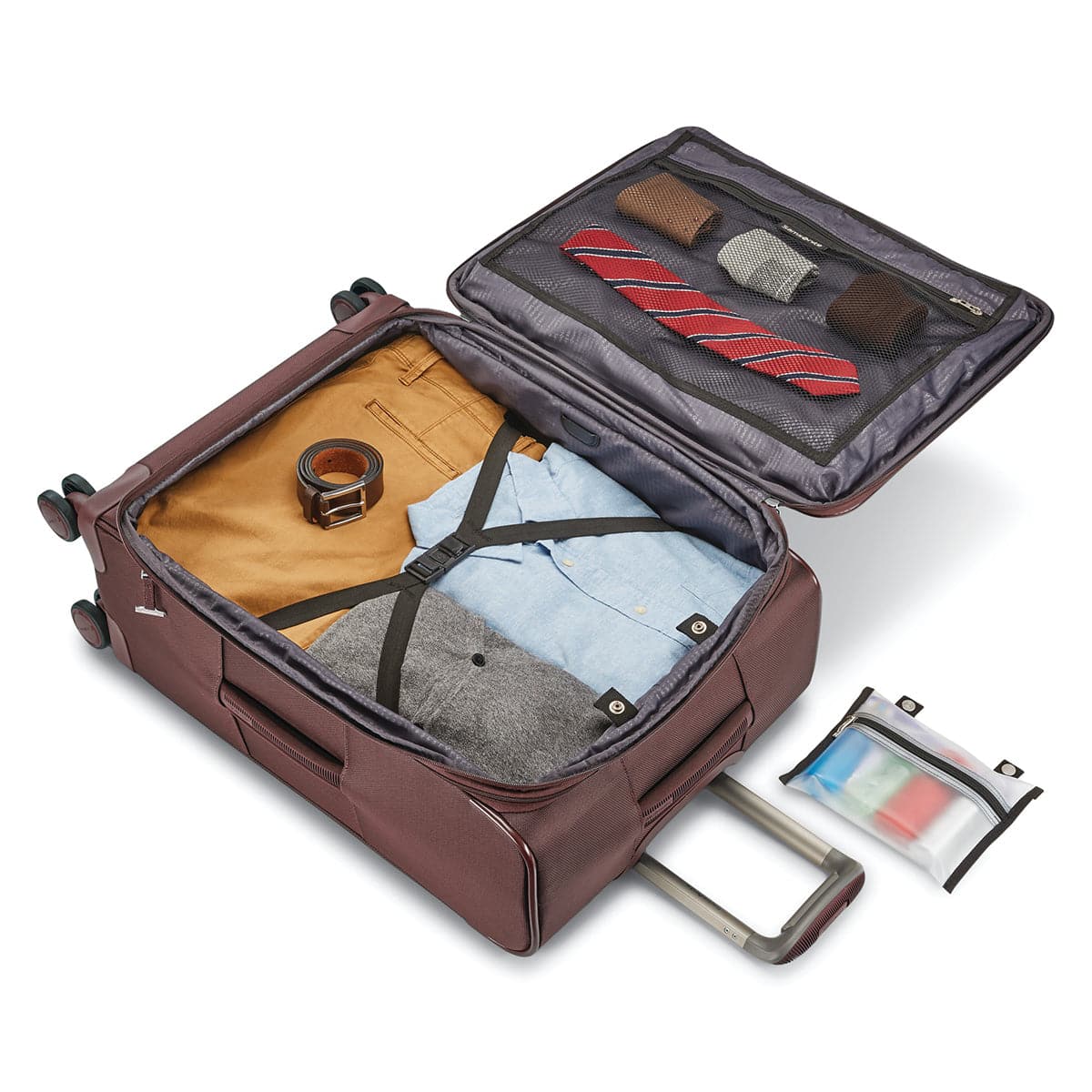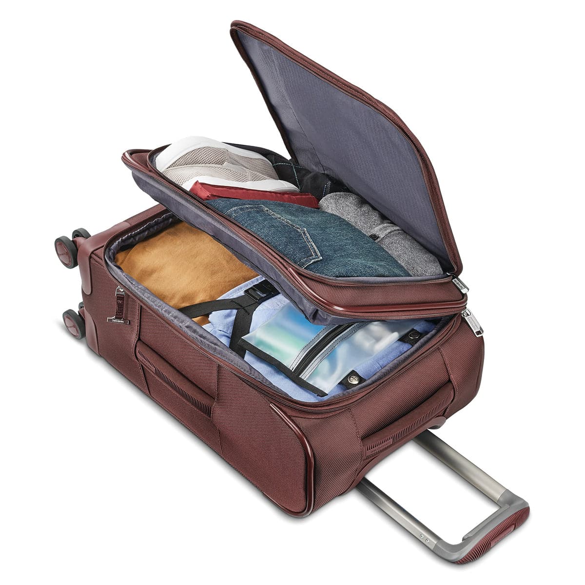 - Glides and pivots like a dream with Samsonite’s premium, custom engineered dual spinner wheels, recessed to maximize packing capacity Expandable by 0.75" for extra packing capacity when needed