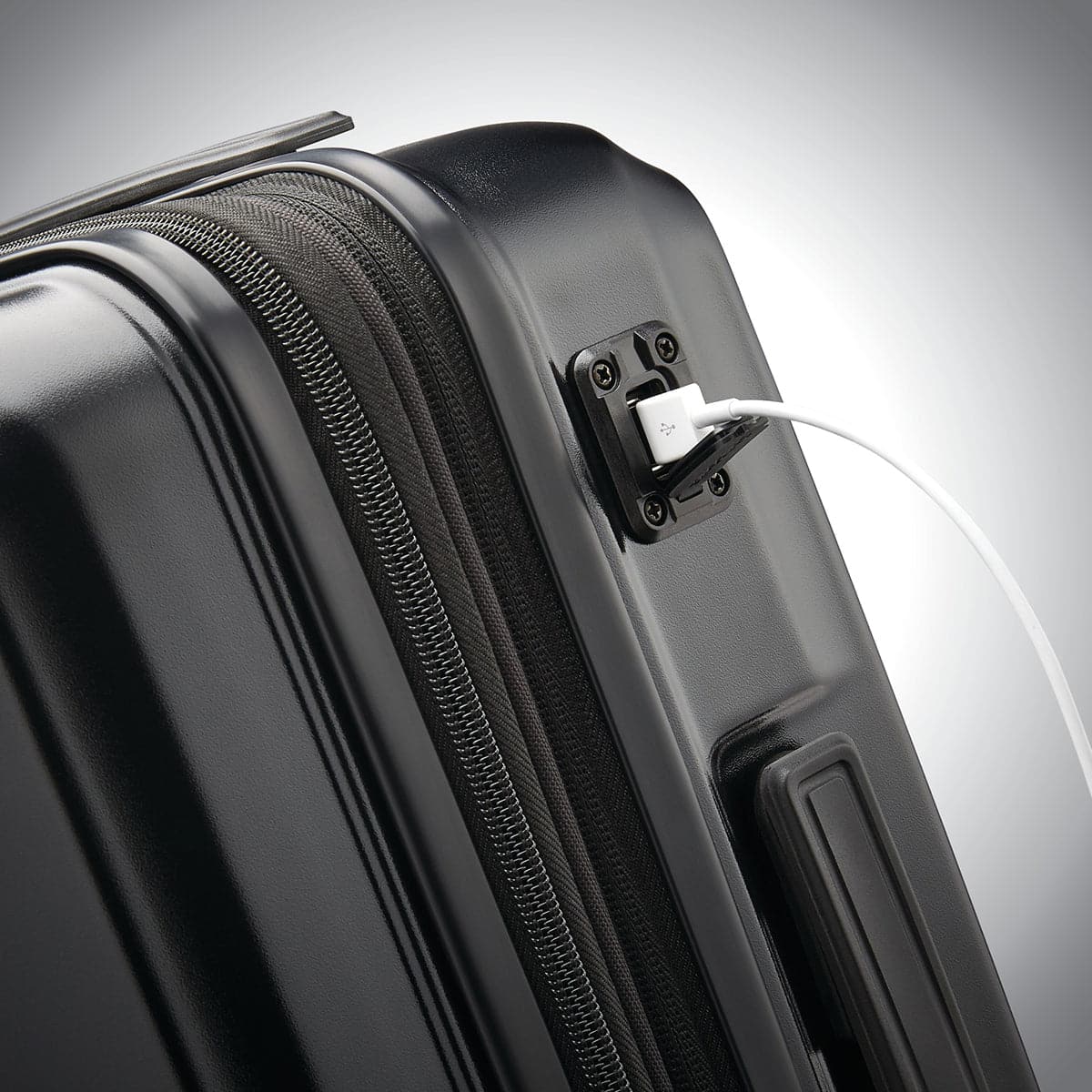 - Exterior: 100% polycarbonate shell, USB port offers stress-free charging (just add your battery), recessed TSA-approved lock adds security