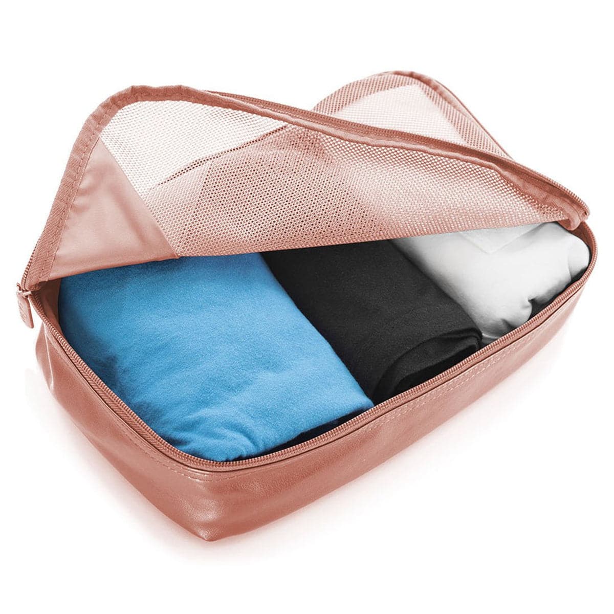 ● Nylon Zipper Bags- These bags are typically available in three sizes and are made up of nylon fibers. They are very durable and lightweight, so you can carry your toiletries, intricate jewelry, or even your basic set of documents (yes, they are waterproof) in them as well.