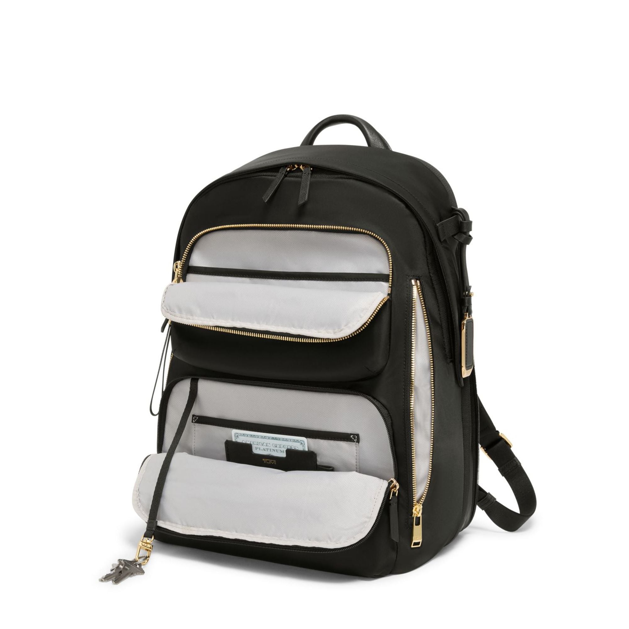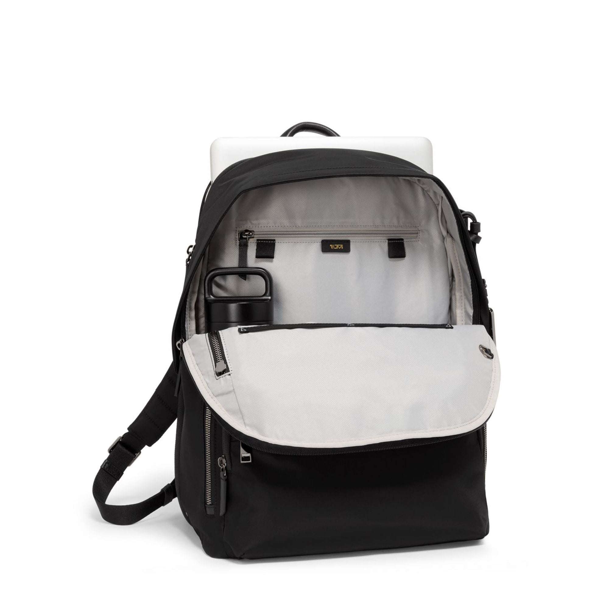 • Padded adjustable backpack straps with D-ring and loop compatible with select TUMI+ accessories