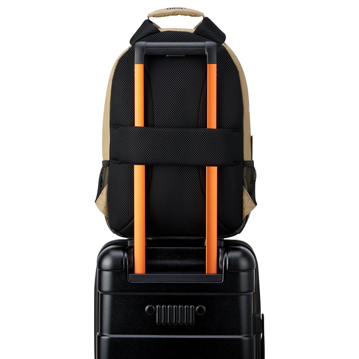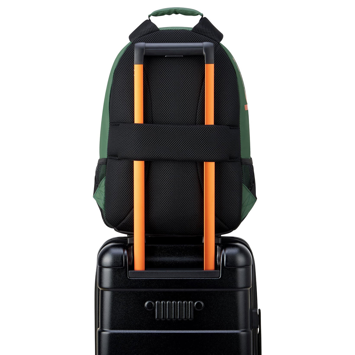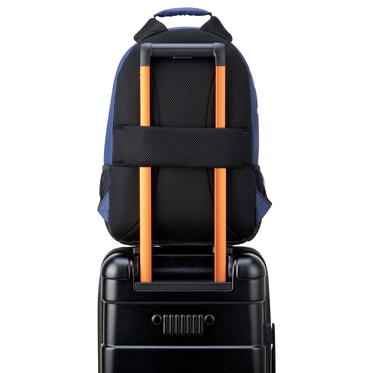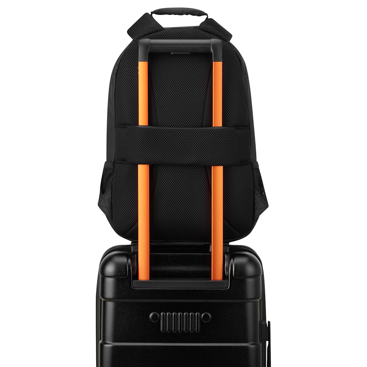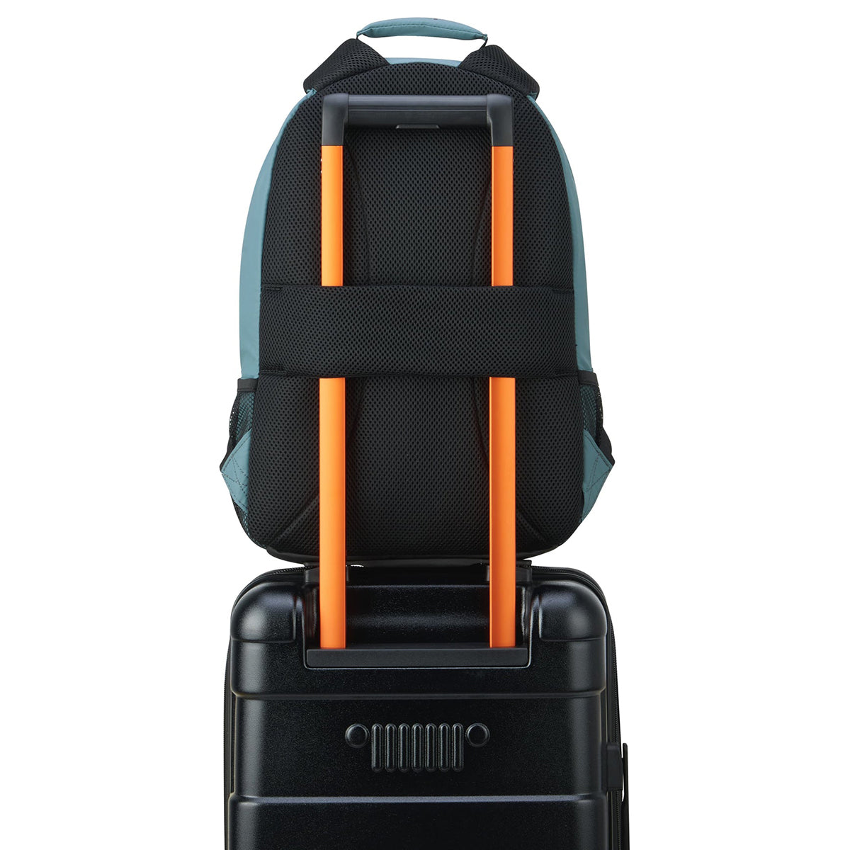 - Adventure-optimized padded back panel featuring a luggage band, ready to seamlessly slide over the trolley tubes of rolling luggage, facilitating effortless transitions between travel modes