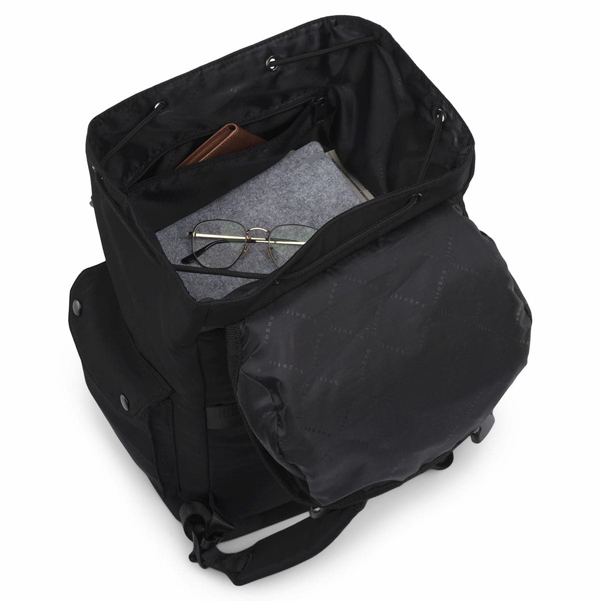 - Bugatti Logo: The backpack also features a Bugatti logo printed lining, adding a touch of style to the overall design, the Bugatti logo is also printed tone on tone, creating a subtle yet stylish effect