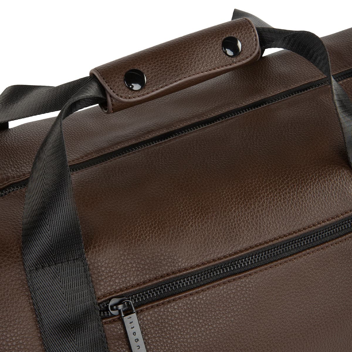 - Flap with snap buttons on the top handles for an easy grip