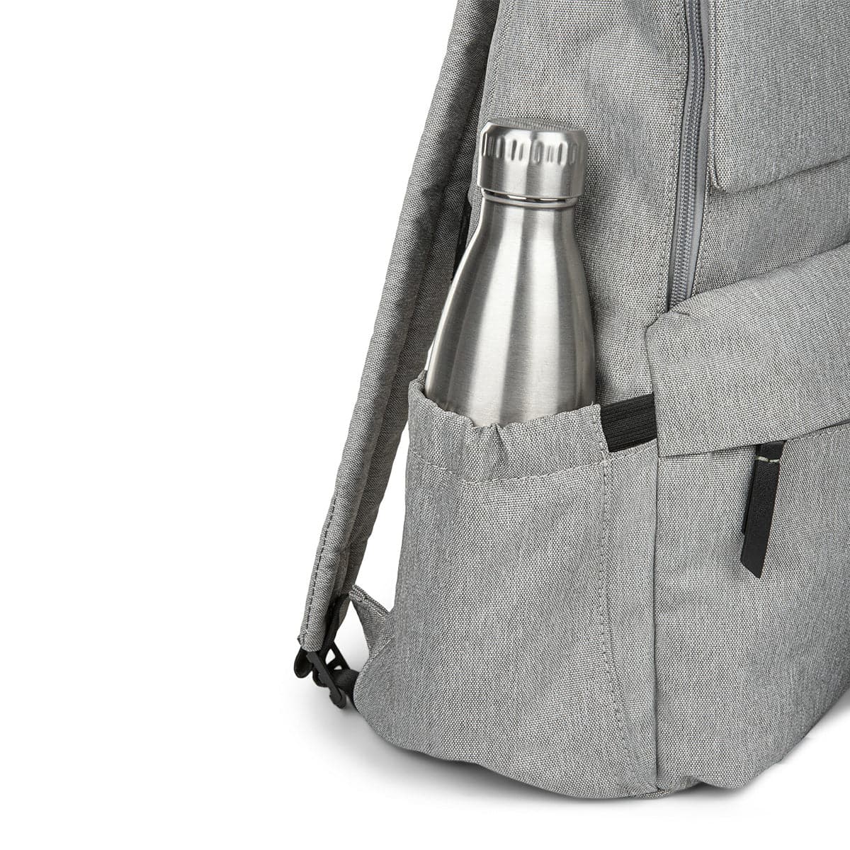 - Discrete elastic pocket for your water bottle, so you can stay hydrated without sacrificing space in your backpack
