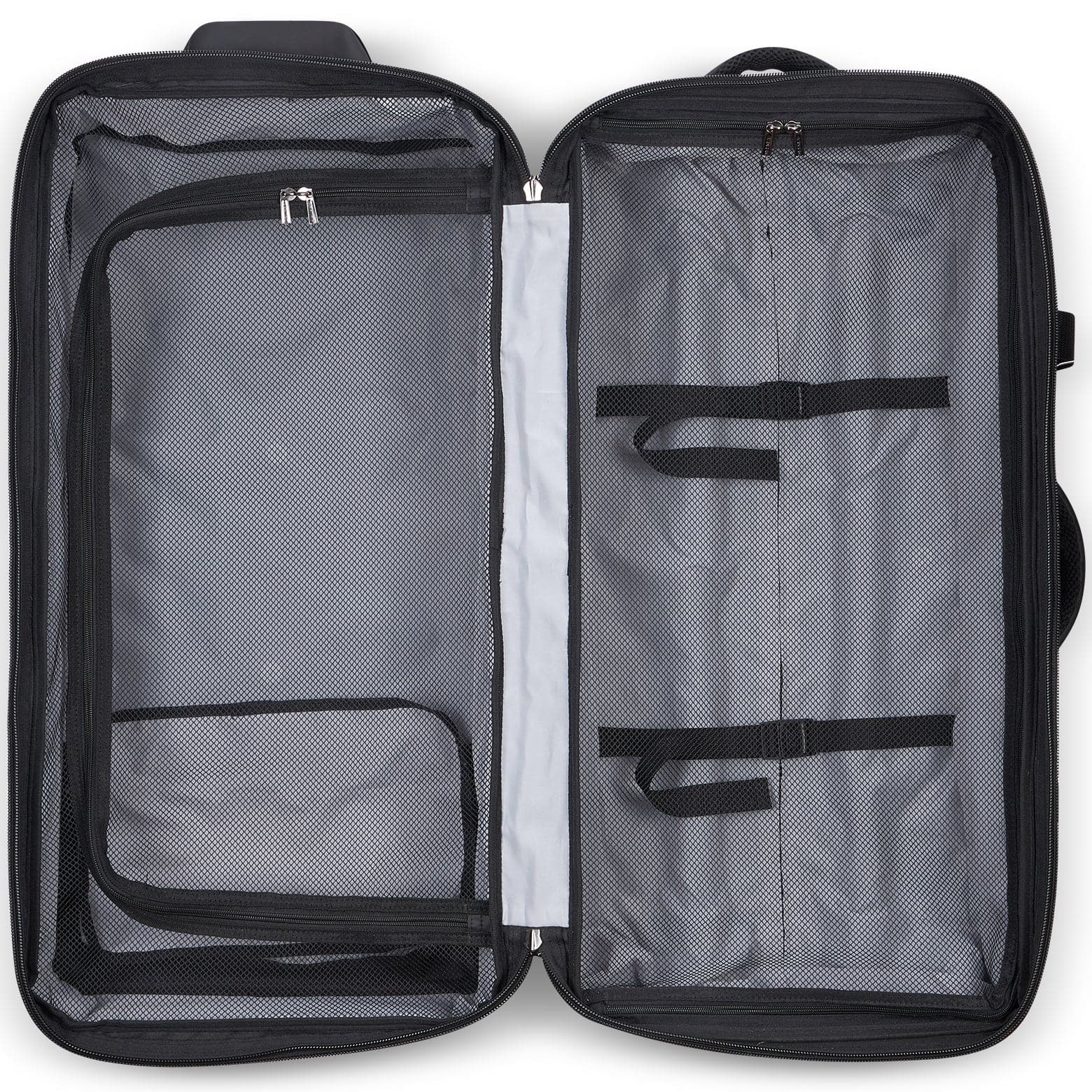 - 50/50 Opening: 50/50 opening with two equal size compartments and zippered mesh panels