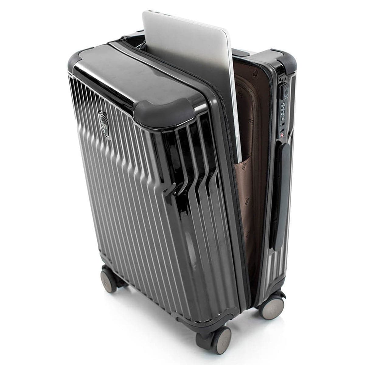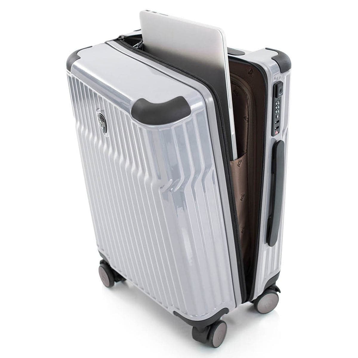- Flush-mounted built-in TSA combination lock
