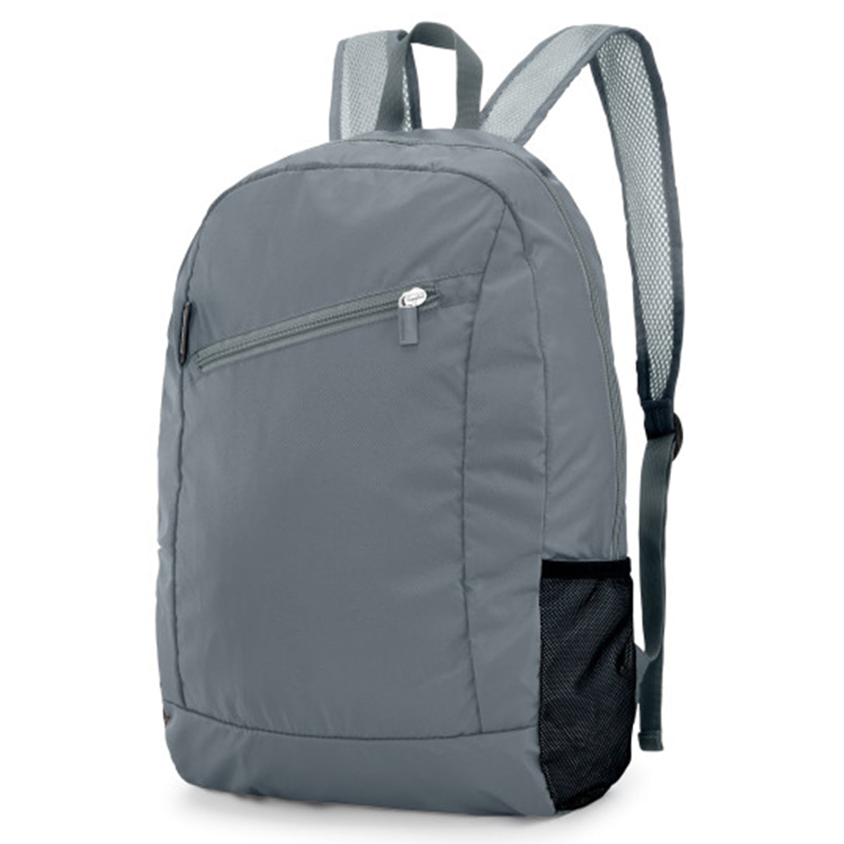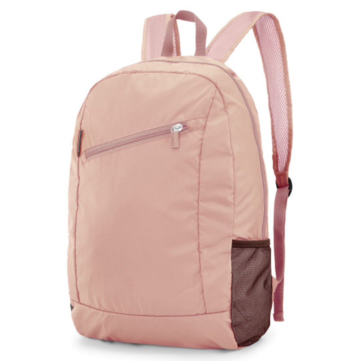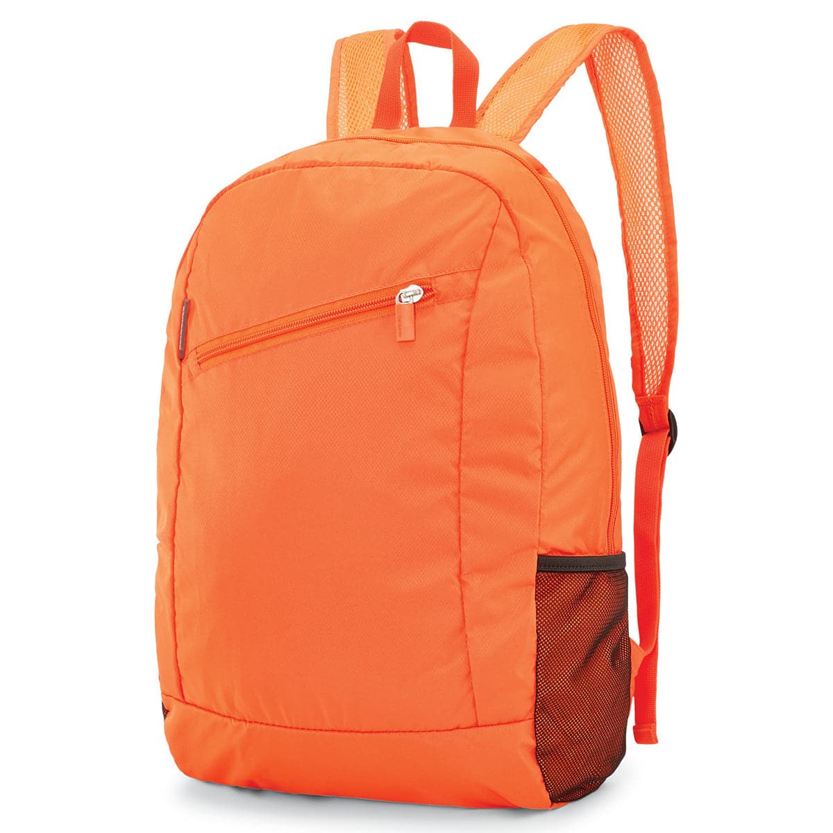 - Exterior features large zip pocket and 2 side mesh pockets
